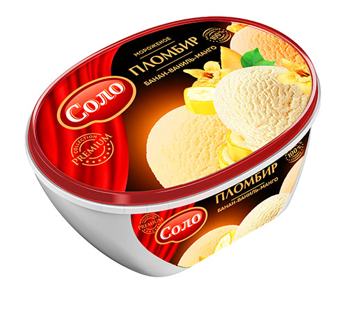 Соло — премиальная линейка мороженого, созданного по традиционной рецептуре в строгом соответствии с требованиями ГОСТ, на основе свежих сливок собственного производства. Продукция "Соло" - это только высококачественные натуральные компоненты и никаких искусственных красителей и консервантов. Незабываемый вкус пломбира из 100% натуральных сливок и тонкий аромат ванили, манго и банана подарит Вам невероятное наслаждение и тот самый вкус мороженого из детства. Удобная семейная упаковка позволит Вам насладиться сладким пломбиром с нежным ароматом ванили, манго и банана в уютной домашней обстановке в кругу своей семьи.