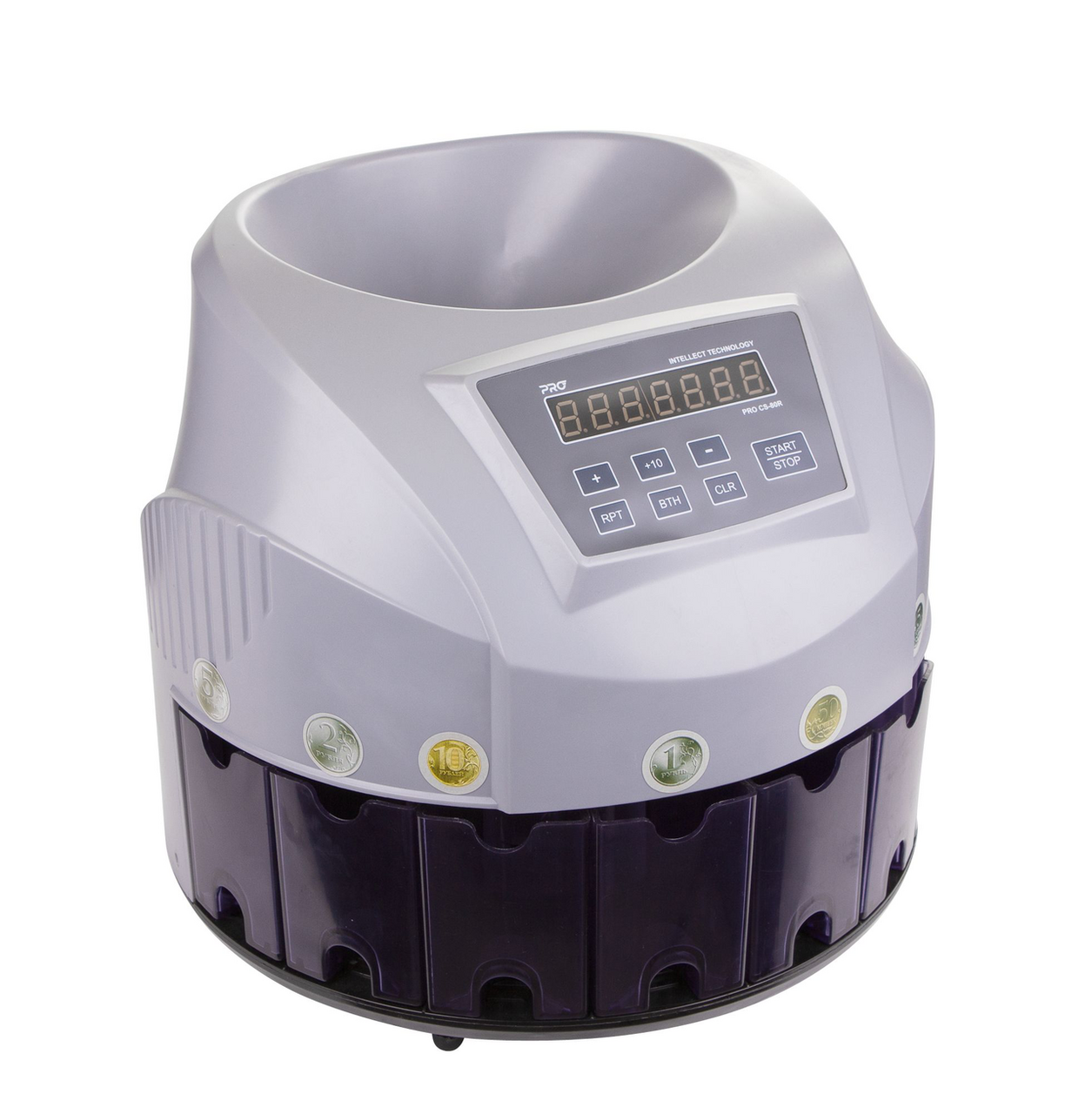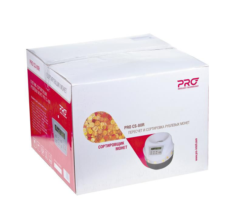 PRO 80R cортировщик монет. Функции и преимущества: пересчет и сортировка российских монет; сортировка монет по номиналу за один ''проход''; подсчет общей суммы и суммы по каждому номиналу; фасовка монет по каждому номиналу. Вместительный загрузочный бункер, автоматическая остановка при переполнении приемного кармана, удобное изъятие юбилейных монет большего диаметра. Прост и удобен в эксплуатации.