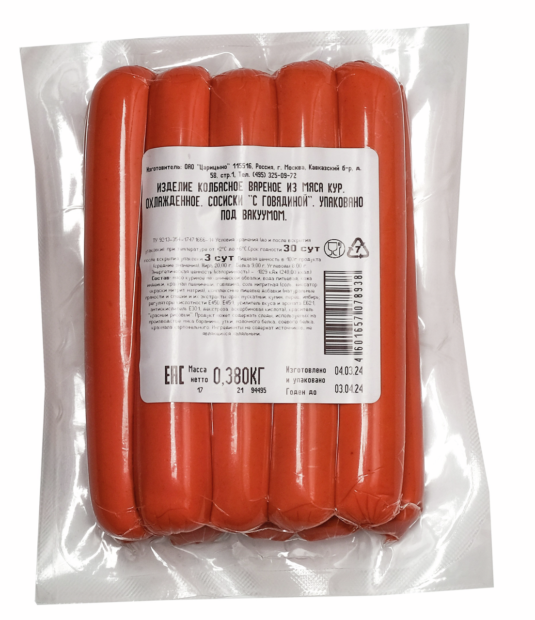 Сосиски Идель особые с говядиной вареные Халяль, 380г