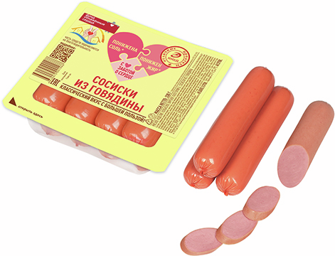 Вкусные и сочные, с добавлением нежного куриного мяса, молока и сдержанных специй. Это заряд энергии, бодрости и пользы. Вам понравится замечательная упругая мясная консистенция и выраженный вкус говядины с нотками кардамона и натуральным копчением на буковой щепе. Отменный вкус сосисок сочетается с пользой. Мясо говядины – важный источник белка, оно насыщает организм и помогает восстанавливать силы. Содержание жира и соли в продукте понижено относительно допустимого значения, указанного в ГОСТ 33673-2015. Сосиски из говядины отлично подойдут для вкусного обеда с запеченным картофелем или салатом из свежих овощей. Сосиски из говядины станут достойной основой вкусного ужина: приготовьте на гарнир печеную тыкву с луком и чесноком или разнообразьте ваше меню пюре из зеленого горошка со сливками и зеленью.
