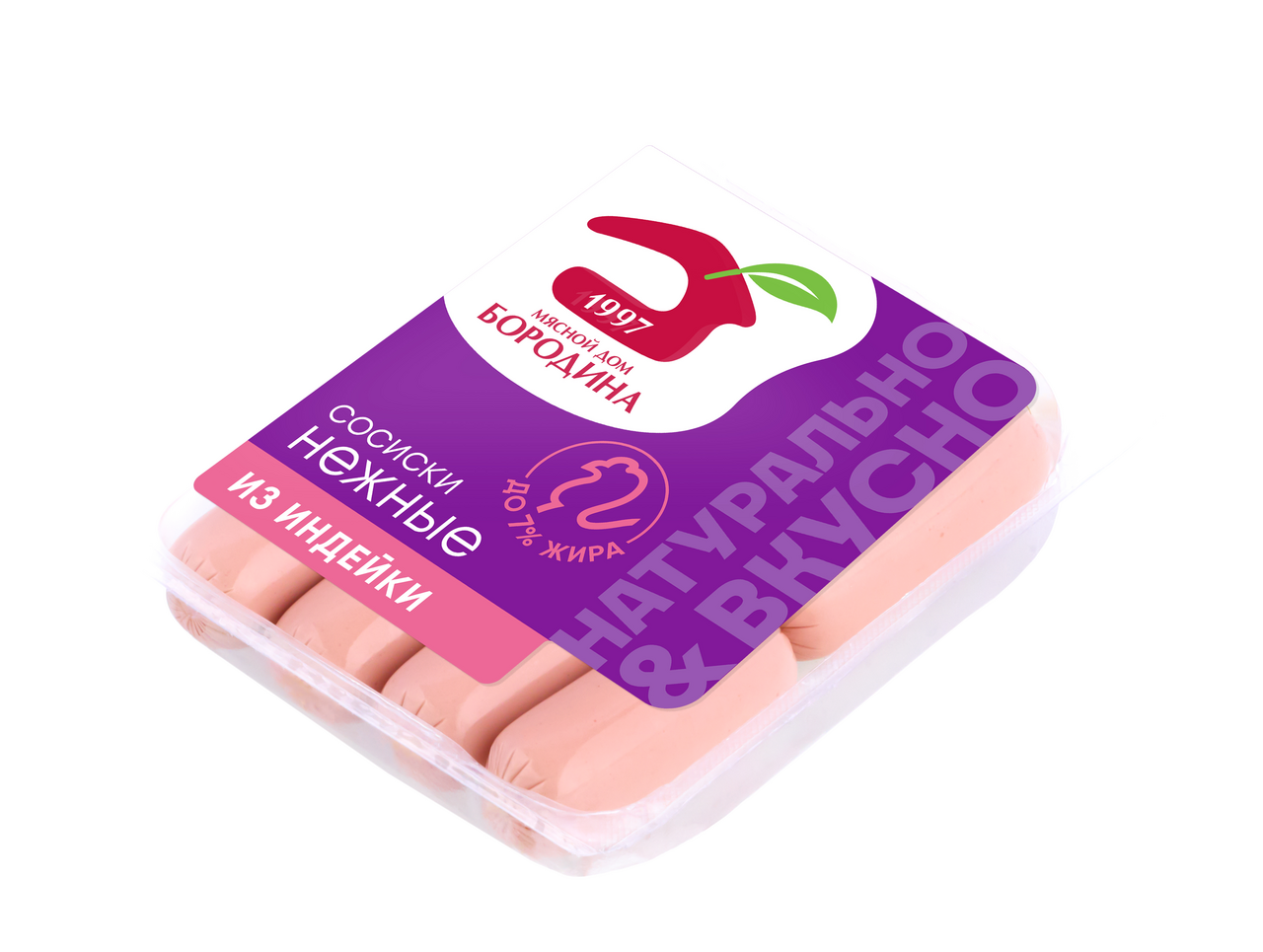 Сосиски из индейки Мясной дом Бородина Нежные вареные, 240г