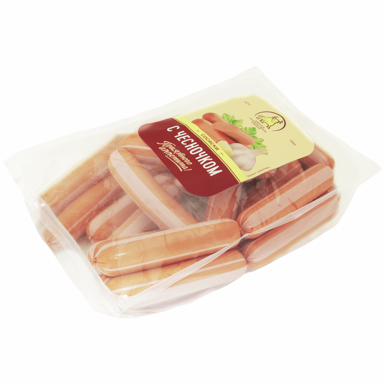 Сосиски из мяса кур СПК с чесночком вареные, ~1кг