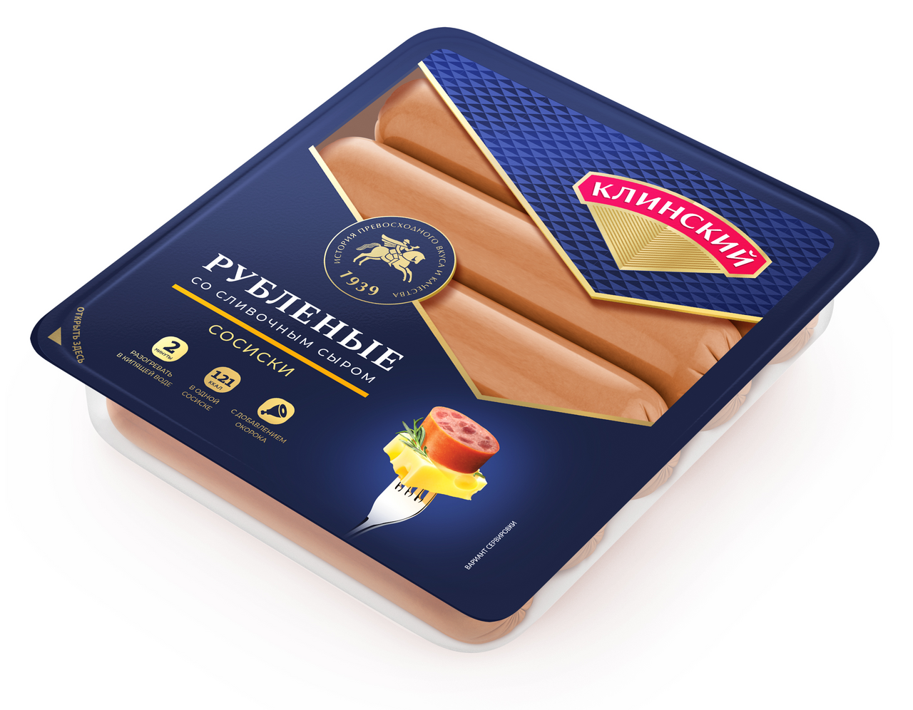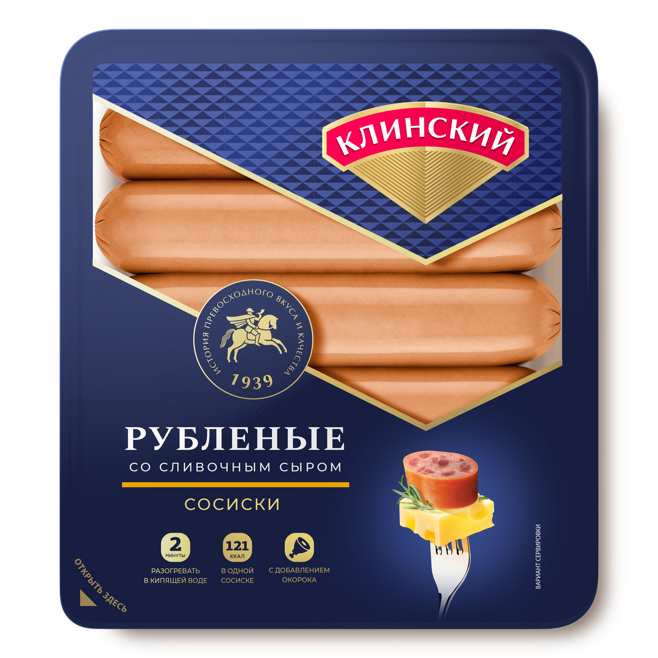 Сосиски Клинский рубленые со сливочным сыром вареные, 300г