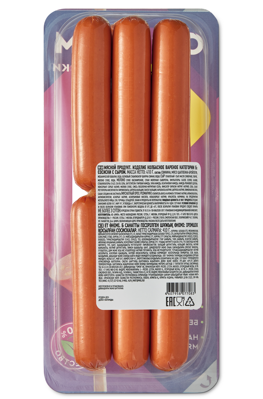 Принадлежат к мясным продуктам категории В. Изготовленные из свинины, говядины и сочного куриного филе с добавлением сыра, они необыкновенно вкусны.
