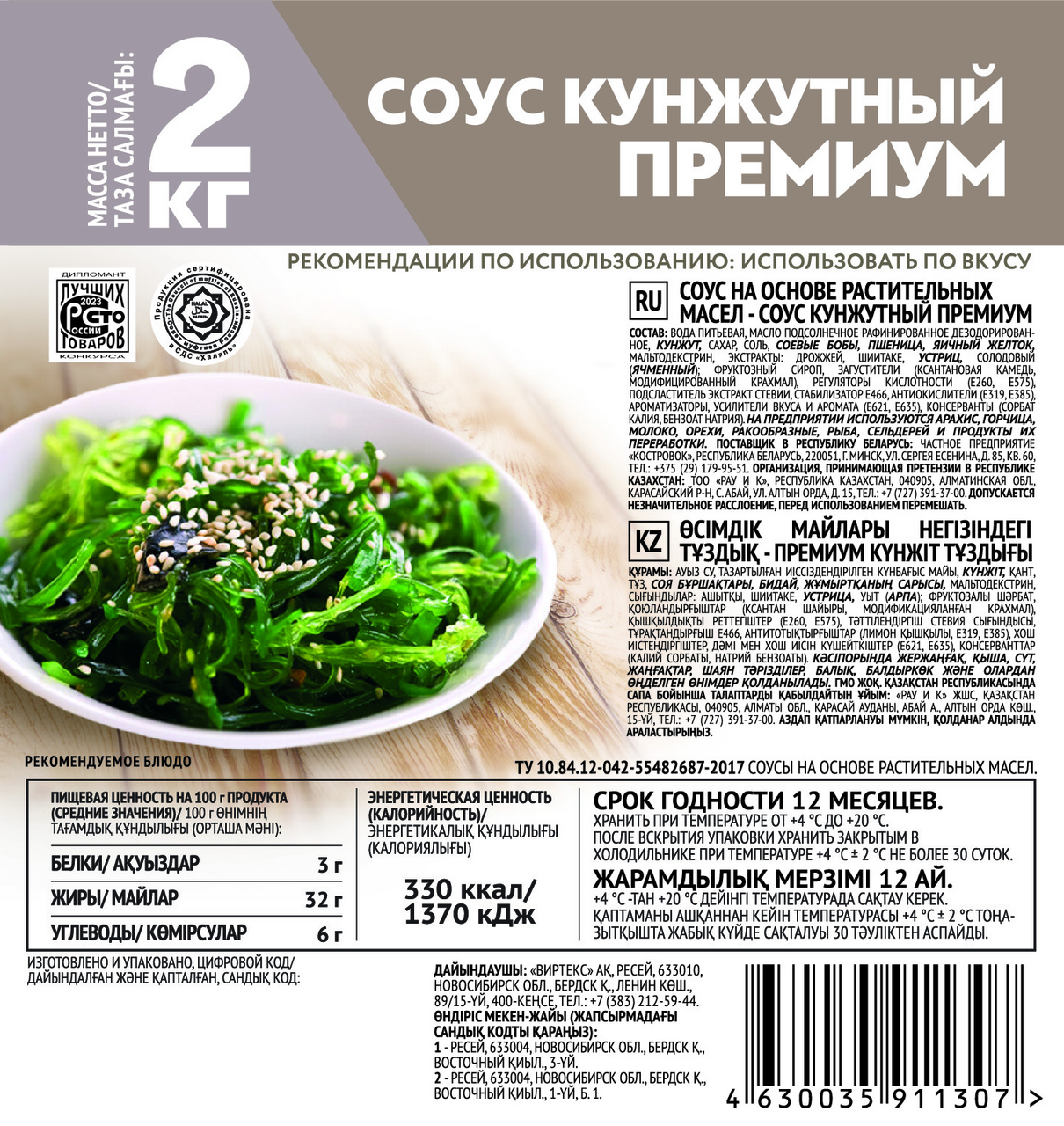 Вода питьевая, масло подсолнечное рафинированное дезодорированное, кунжут, сахар, соль, соевые бобы, пшеница, яичный желток, мальтодекстрин, экстракты: дрожжей, шиитаке, устриц, солодовый (ячменный); фруктовый сироп, загустители (ксантановая камедь, Е1422), регуляторы кислотности (Е260, Е575), подсластитель экстракт стевии, стабилизатор Е466, антиокислители (Е319, Е385), ароматизаторы, усилители вкуса и аромата (Е621, Е635), консерванты (сорбат калия, бензоат натрия).