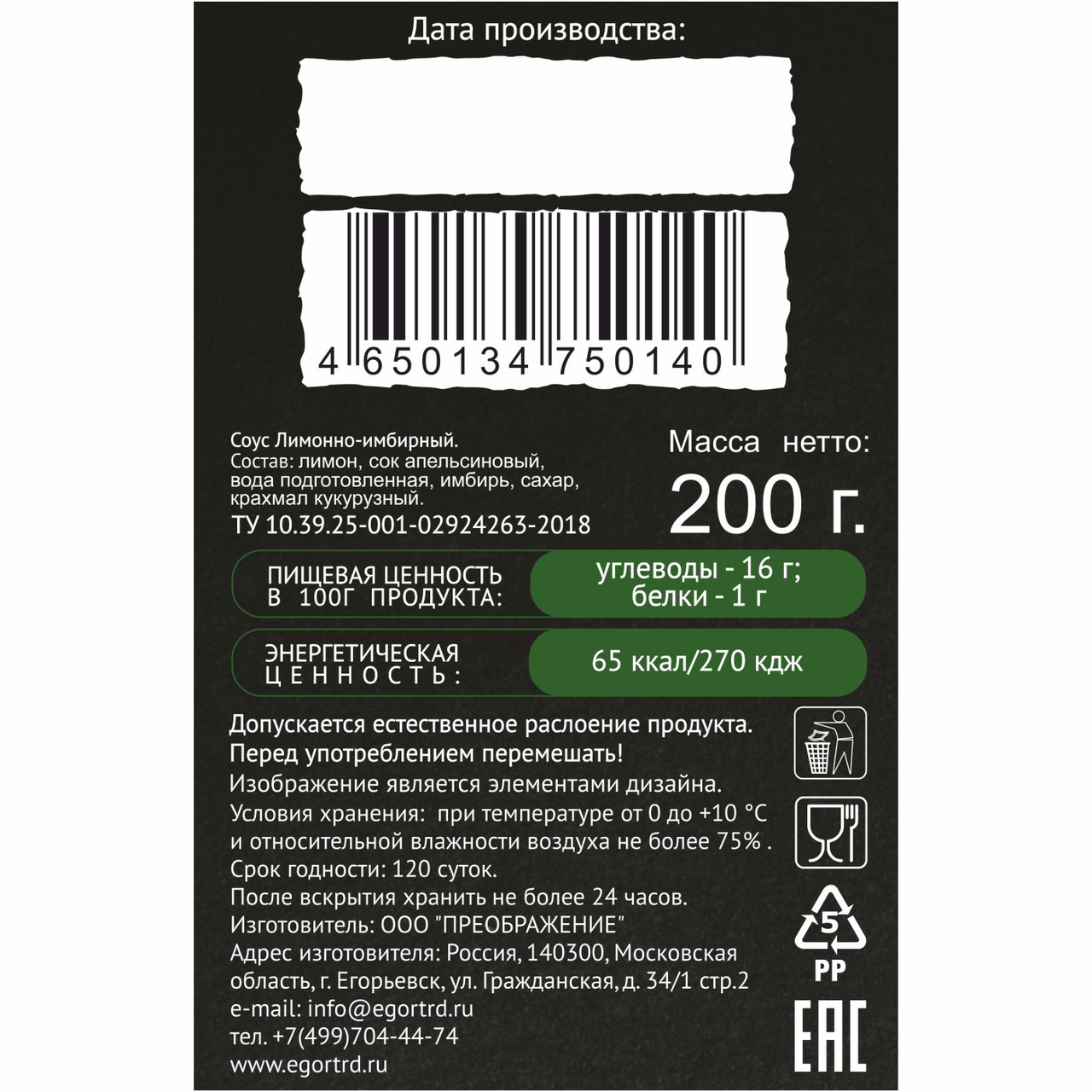 Соус ЕГОРЬЕВСКИЕ ТРАДИЦИИ Имбирный 200 г - это вкусный и полезный продукт, приготовлен без консервантов и красителей, в состаке только натуральные специи и овощи. Подойдет к любому виду мяса.