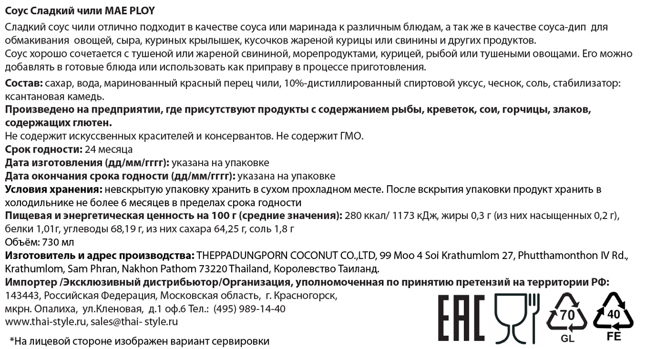Соус Mae Ploy сладкий чили, 920г
