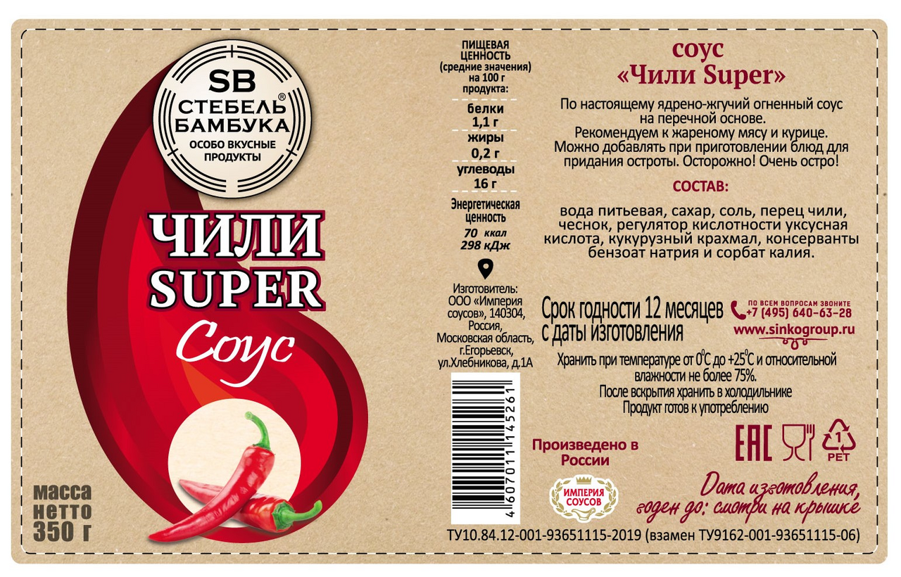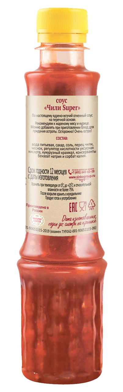 Вода питьевая, сахар, соль, перец чили, чеснок, регулятор кислотности уксусная кислота, кукурузный крахмал, сорбат натрия.