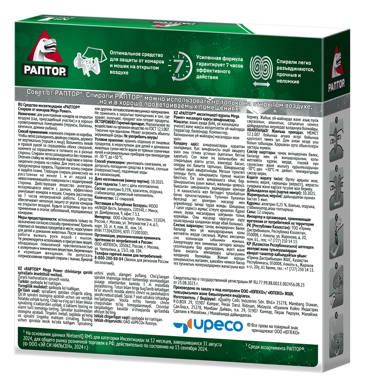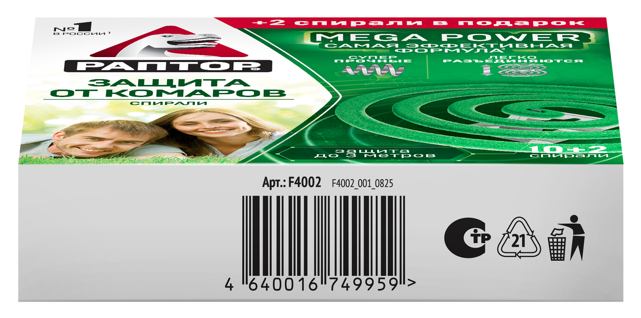 Спирали от комаров Раптор Mega Power, 12шт