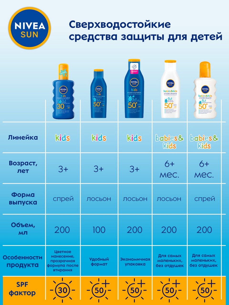 Спрей солнцезащитный детский Nivea Sun Kids Ультразащита SPF50+, 200мл