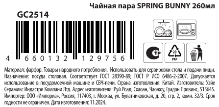Чайная пара Spring Bunny 260мл изысканный комплект для уютных чаепитий. Чашка и блюдце украшены нежным весенним рисунком с очаровательным зайчиком и цветочными мотивами, создавая атмосферу тепла и радости. Изготовлены из прочного и лёгкого фарфора, устойчивого к высоким температурам. Идеально подходят для чая, кофе и других горячих напитков. Безопасны для использования в микроволновой печи и посудомоечной машине. Spring Bunny - это стильная сервировка и прекрасная идея для подарка.