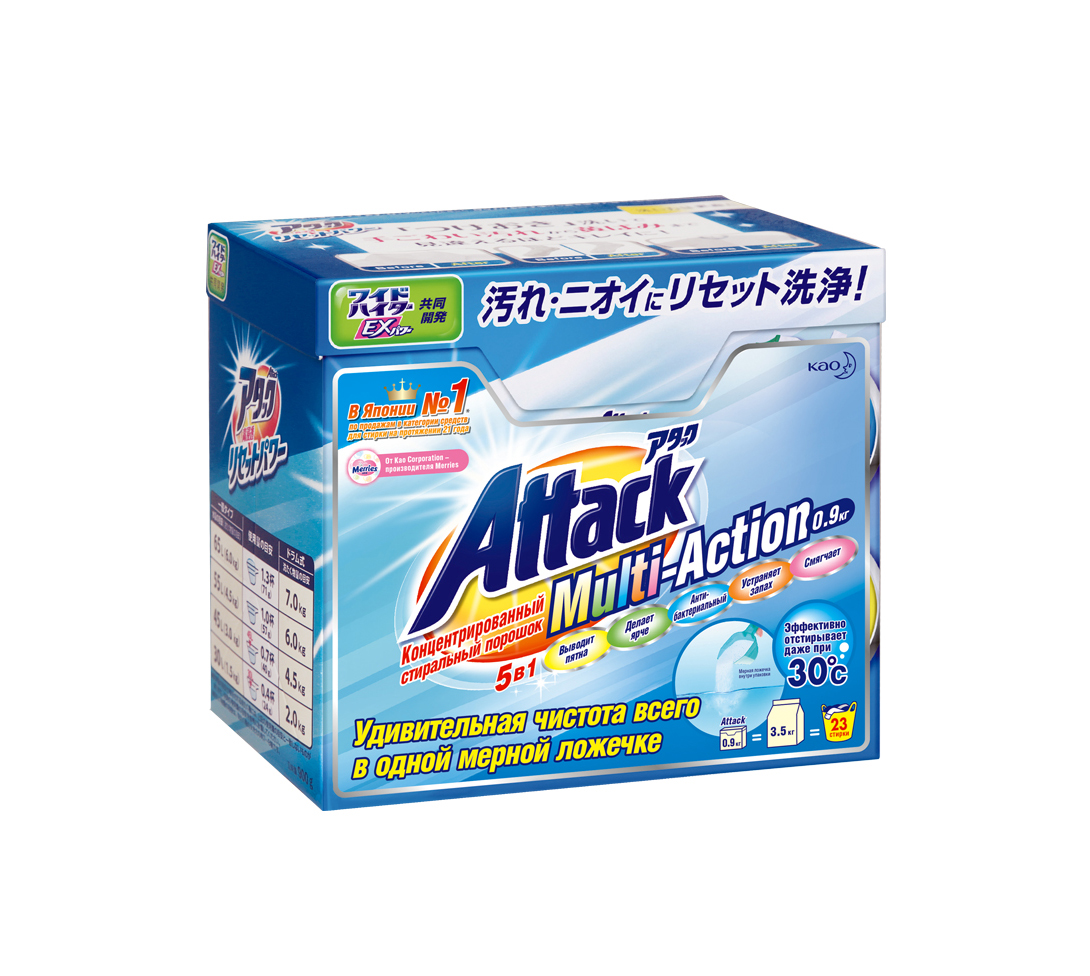 Attack Стиральный порошок концентрированный с пятновыводителем и кондиционером Multi-Action 0,9кг