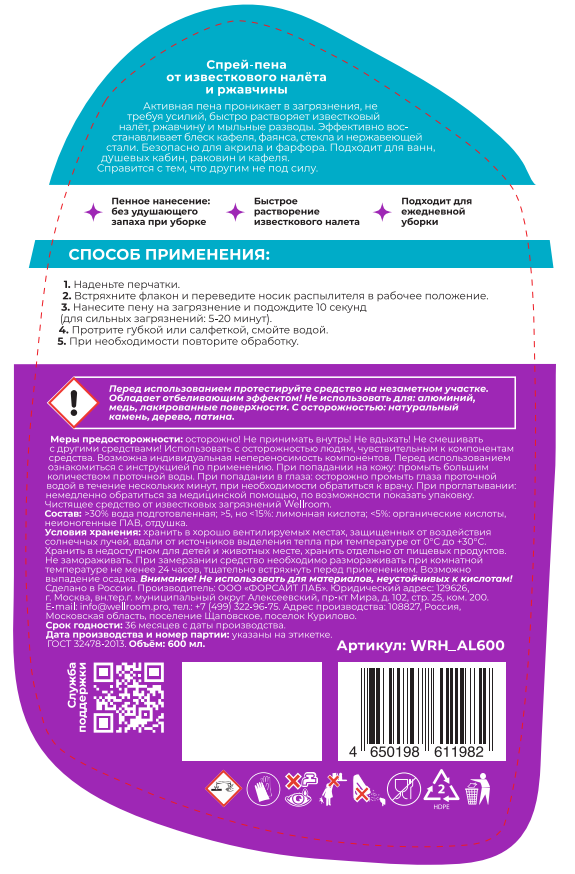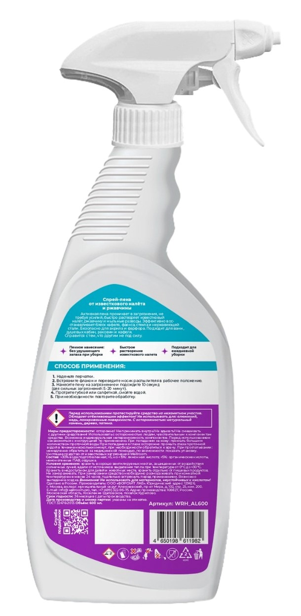 Средство чистящее Wellroom спрей-пена антиизвесть, 600мл