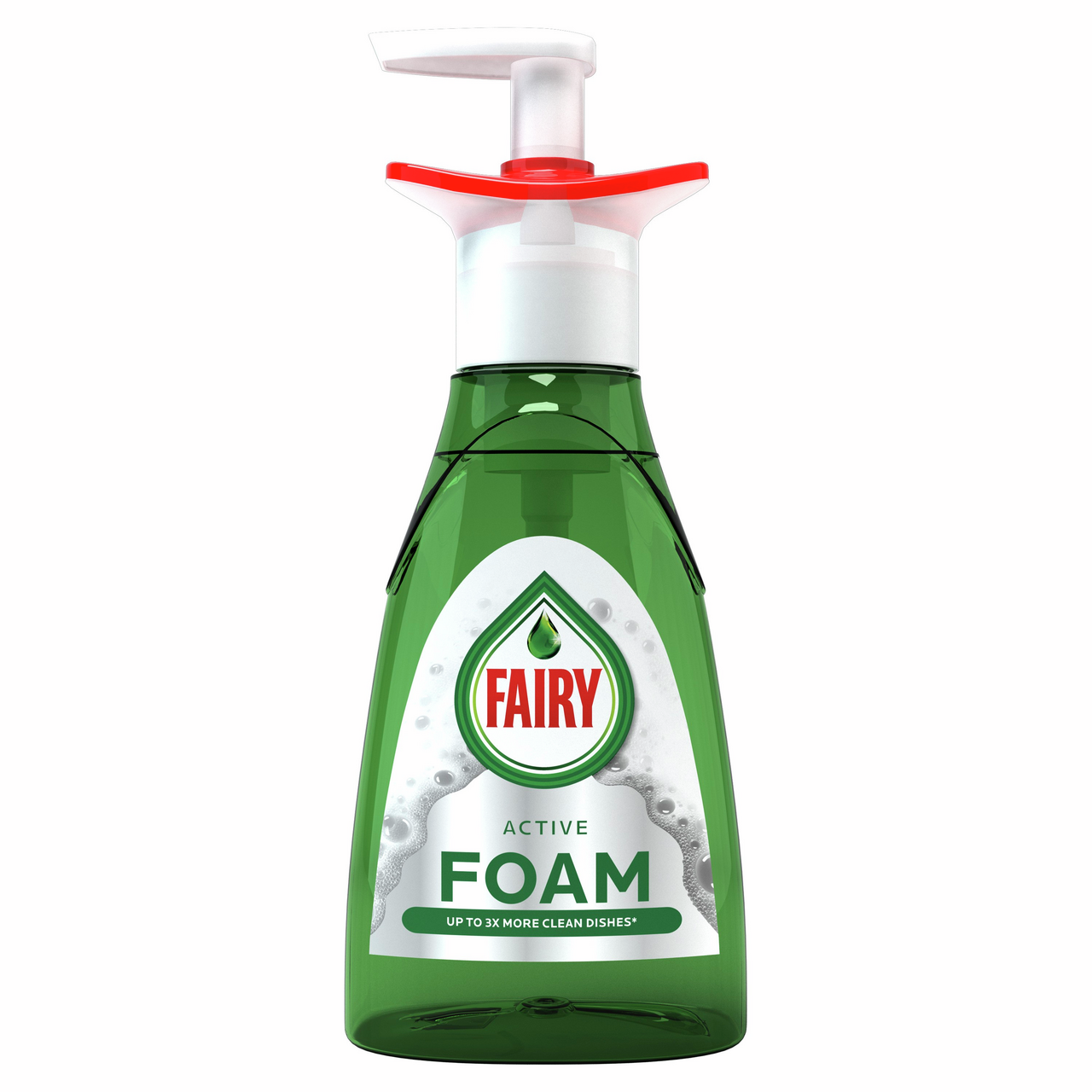 Революционное средство Fairy Активная пена эффективно расщепляет жир, позволяя быстро и легко справляться с грязной посудой. Больше не нужно мочить губку и взбивать жидкость в пену: готовая к применению пена наносится прямо на губку и обеспечивает блестящий результат.1) Готовая к применению пена - нажмите на дозатор, нанесите на губку, приступайте к мытью2) Высокоэффективное расщепление жира3) Идеально справляется даже со сложными загрязнениями и пригоревшим жиром4) Служит до 3 раз дольше (по сравнению с более дешевым средством для мытья посуды, производимым компанией P&G)