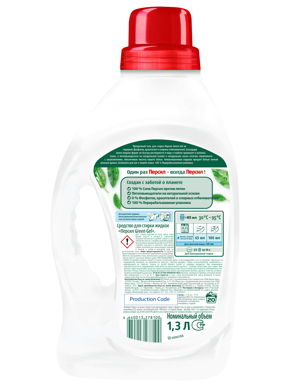 Жидкий порошок Персил Грин гель: не содержит фосфатов, красителей и хлорных отбеливателей; пятновыводители на натуральной основе; гипоаллергенная отдушка; подходит для стики изделий из всех типов ткани (кроме шерсти и шелка); обеспечивает щадящее отношение к ткани во время стирки; растворяется даже в холодной воде и при стирке на кротких циклах; не оставляет разводов и полностью выполаскивается водой; не пылит, не просыпается и не накапливается в кювете стиральной машины; 100% перерабатываемая упаковка.