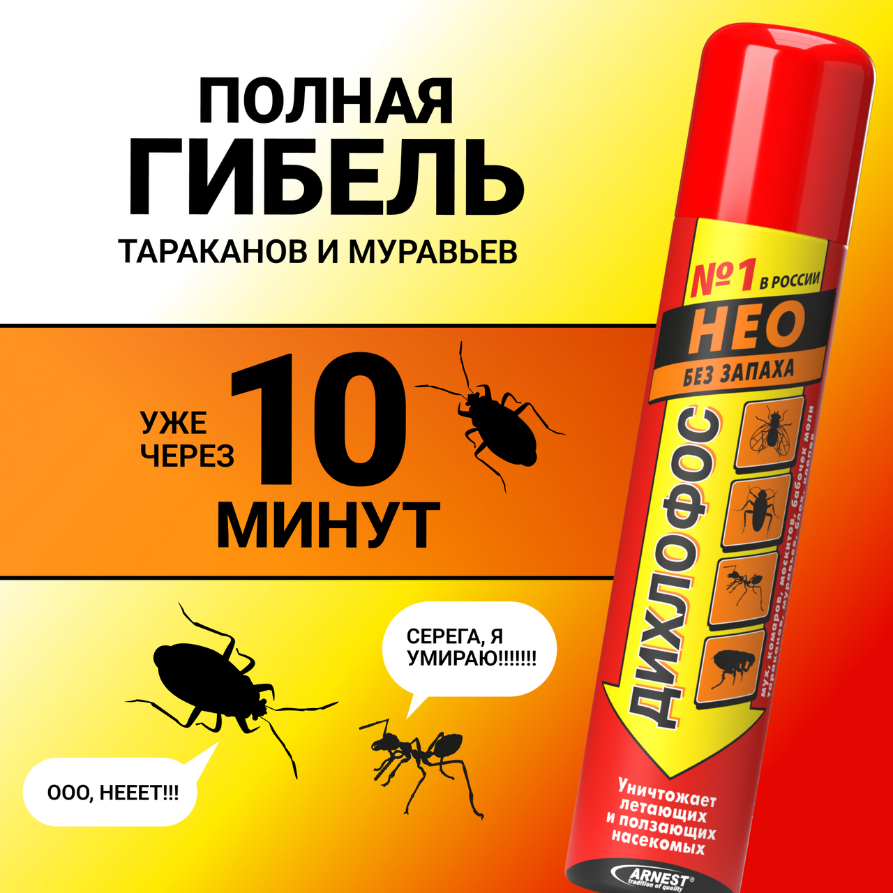 Средство инсектецидное Дихлофос Нео+ от летающих и ползающих насекомых, 190мл