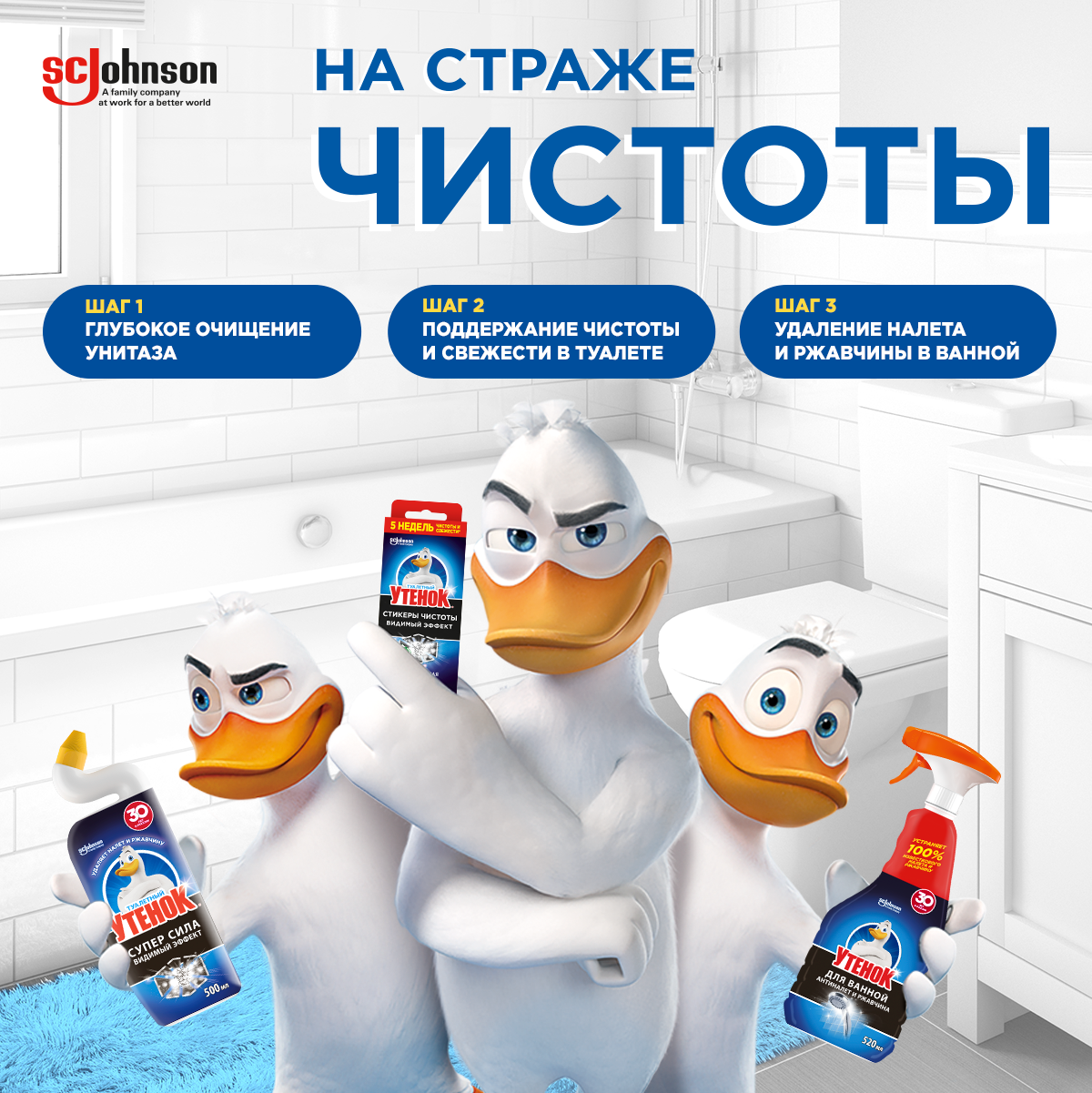 Туалетный Утенок "Чистящее средство для унитазов Антиналет" обеспечивает бескомпромиссную чистоту и свежесть унитаза, эффективно удаляет известковый налет и ржавчину, без хлора в составе. Уникальная форма горлышка позволяет гелю лучше попадать в труднодоступные места скопления бактерий под ободком унитаза. Обладает дезинфицирующим эффектом - убивает 99,99% вирусов и бактерий. Устраняет неприятные запахи. Гель экономично расходуется, равномерно распределяется по поверхности и действует даже под водой. Чистящее средство Туалетный Утенок необходимо применять только для очищения унитаза. Попробуйте также Стикеры Чистоты от Туалетного Утенка для поддержания чистоты и свежести в туалете!