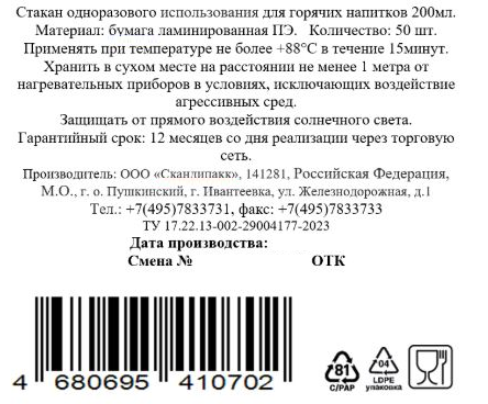 Стакан одноразового использования из ламинированной бумаги с двойной стенкой (наружная стенка из бумаги с индивидуальным выдавливанием), для горячих и холодных напитков/продуктов. Объем: 200мл - 50шт. Дизайн: 1 цветная печать. Верхний край стакана с вальцовкой. Стаканы могут использоваться с крышкой соответствующего диаметра. Крышка должна закрываться герметично. Стенки стаканов обладают малой теплопроводностью, поэтому отлично сохраняют температуру жидкости и не обжигают пальцы. Они пригодятся в поездках на море, дачи, на пикник и в горы. А при желании ими также можно сервировать выездной праздничный стол или использовать для детских торжеств. Это прекрасный вариант как для зимних согревающих напитков, так и для прохладительных коктейлей летом.