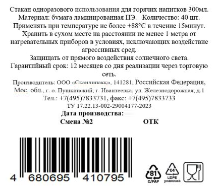 Стакан одноразового использования из ламинированной бумаги с двойной стенкой (наружная стенка из бумаги с индивидуальным выдавливанием), для горячих и холодных напитков/продуктов. Объем: 300мл - 40шт. Дизайн: 1 цветная печать. Верхний край стакана с вальцовкой. Стаканы могут использоваться с крышкой соответствующего диаметра. Крышка должна закрываться герметично. Предназначен для горячих и холодных напитков. Отлично подойдет как для заведений сферы общественного питания, так и для использования в быту.