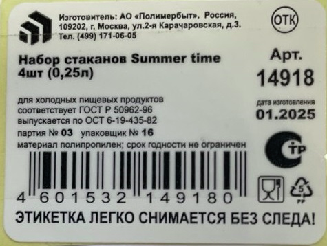 Набор стаканов 0.25мл Summer Time 4шт изготовлены из безопасного пищевого пластика, не содержащего сторонних химических запахов и примесей. Материал стаканов необычайно легок и прочен, поэтому их всегда можно взять с собой в путешествие и на природу. Изделия просто мыть, как в горячей, так и в холодной воде.