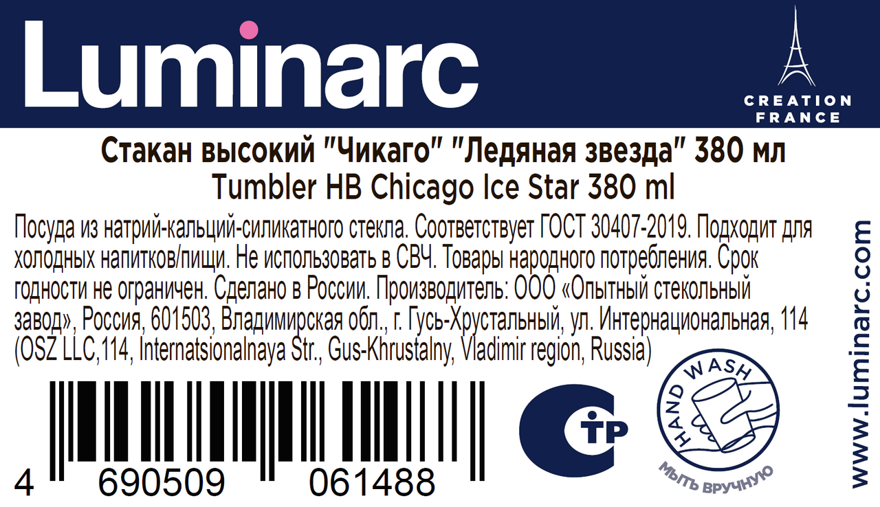 Стакан высокий Luminarc Ледяная звезда Чикаго, 380мл