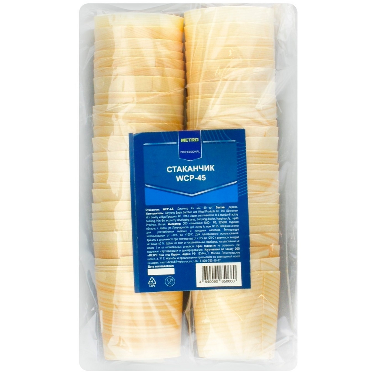 Стаканчик METRO PROFESSIONAL из дерева - это экологичное изделие, предназначенное для сервировки праздничных столов и подачи напитков. Упаковка 50 штук обеспечит стаканчиками несколько праздничных столов или большой банкет. Диаметр стаканчика: 4,5 см. Срок годности не ограничен