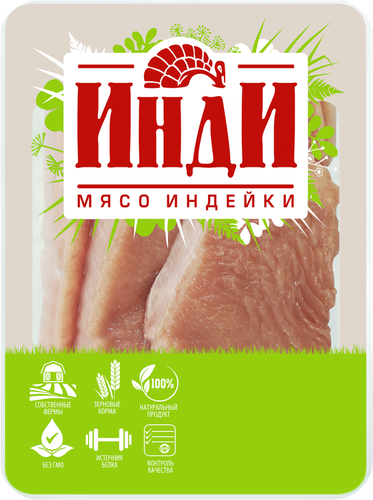 Стейк из грудки индейки Инди идеально подходит для тушения, приготовления отбивных, обжаривания в кляре или фритюре. Мясо также маринуют в специях и соусе, после чего готовят его на гриле. Кроме того, из стейка можно сделать порционные наггетсы и стрипсы в панировочных сухарях.