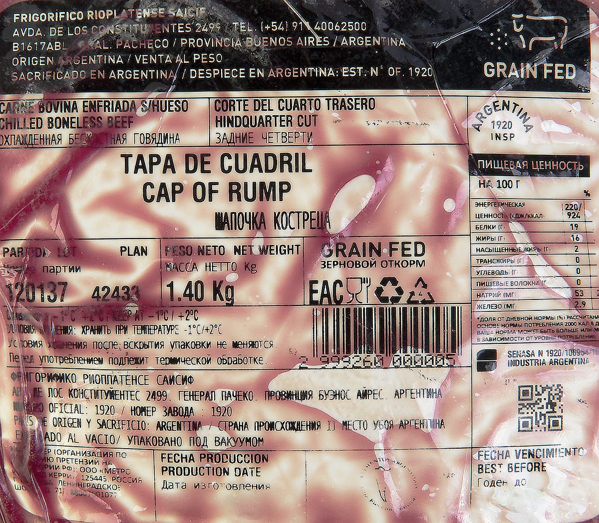 Пиканья говяжья Rioplatense зерновой откорм охлажденная