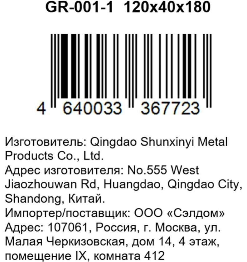 Стеллаж Gastrorag GR-001-1, 120 x 40 x 180см