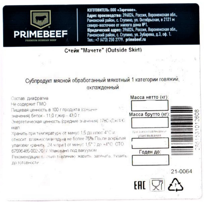 Стейк говяжий Primebeef Мачете охлажденный, ~1.5кг