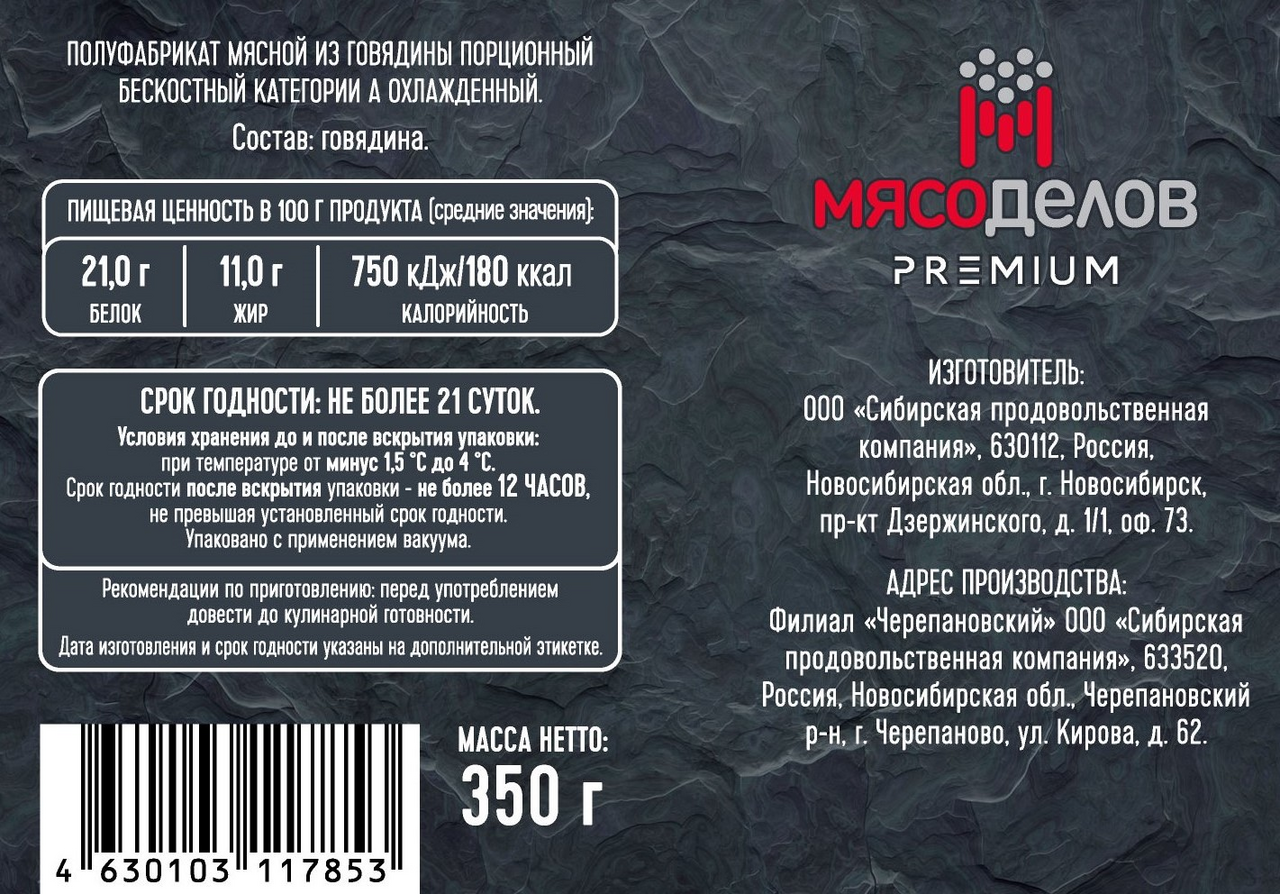 Стейк из тазобедренного отруба, отличается глубоким мясным вкусом и приятной плотной текстурой. Идеально прожаривается до румяной корочки снаружи, оставаясь ароматным и насыщенным внутри. Это нарезанный поперёк волокон пласт говяжьей вырезки, оптимальной толщины. Стейк предназначен для быстрой обжарки на сковороде или гриле.