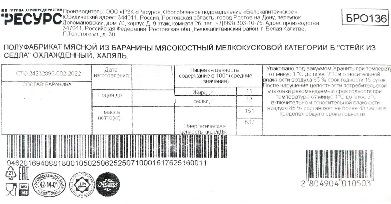 Баранина охлаждённая.