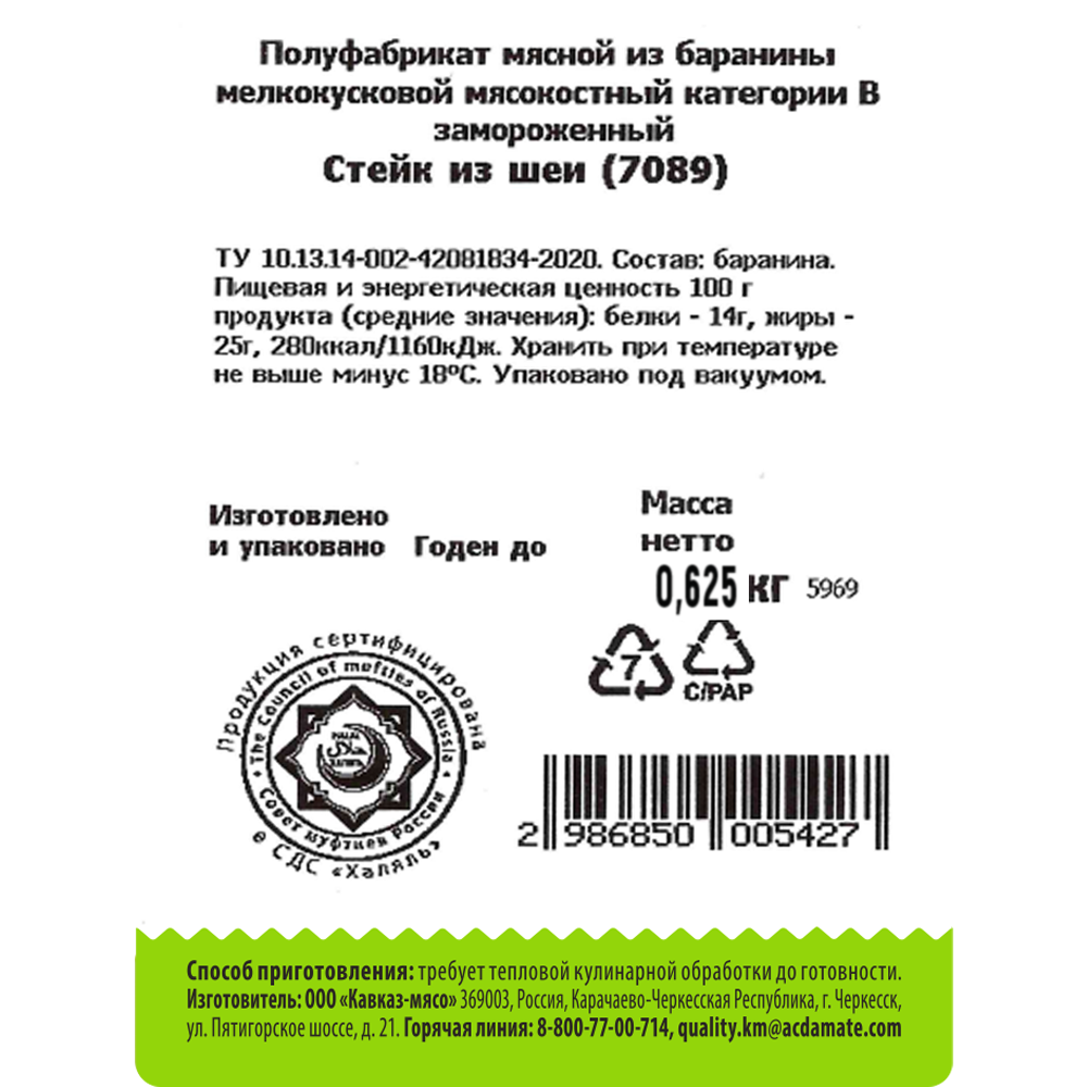 Стейк из шеи баранины Bazarco Халяль замороженный, ~620г