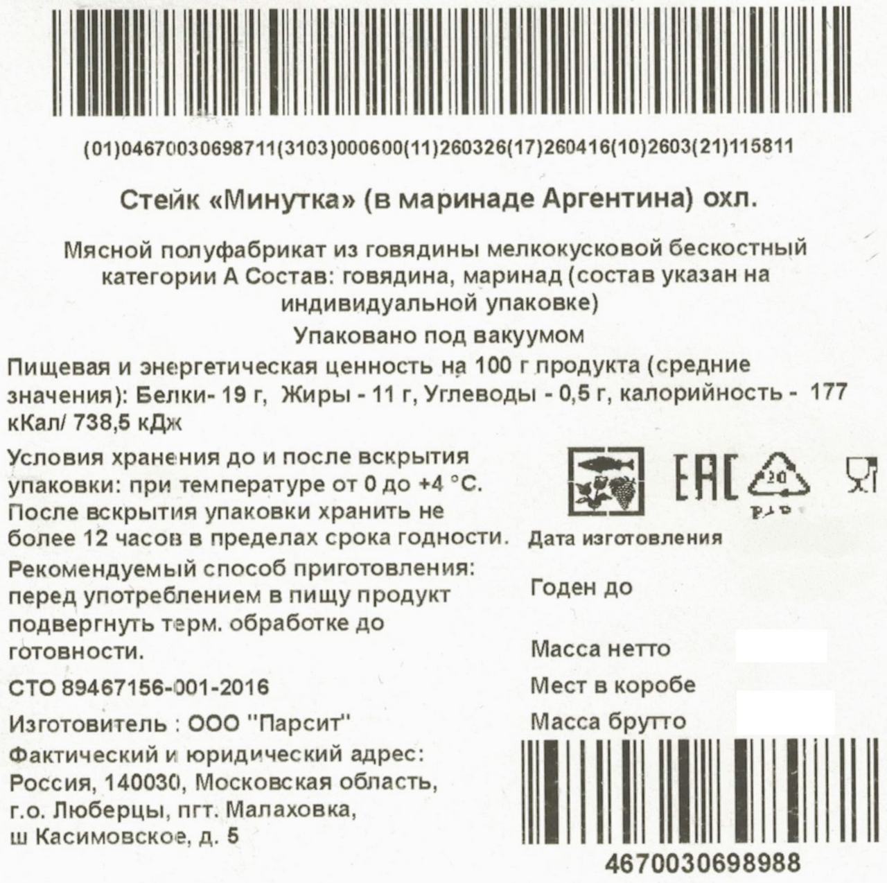 Стейк из говядины Мясо есть! Минутка в маринаде охлажденный, 150г