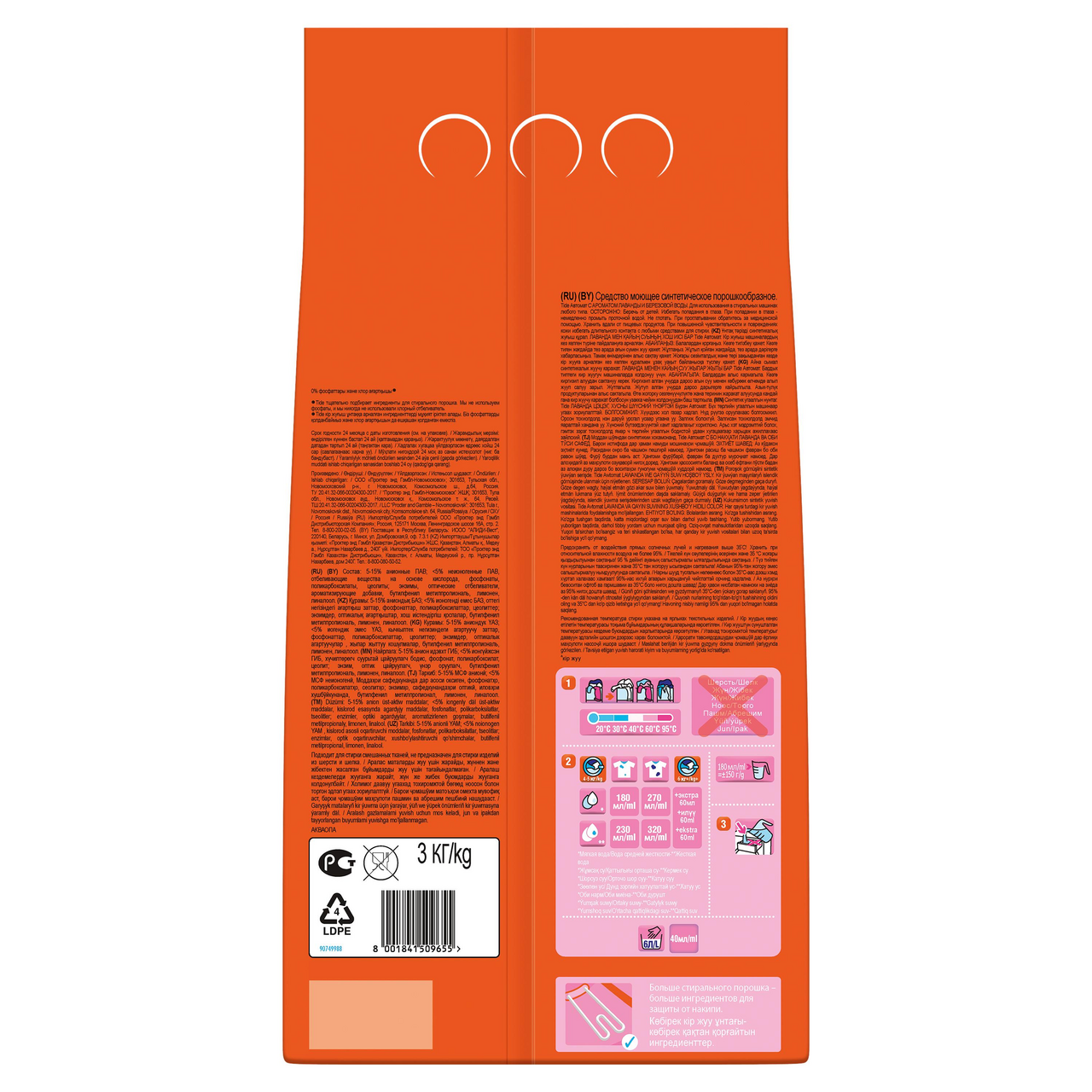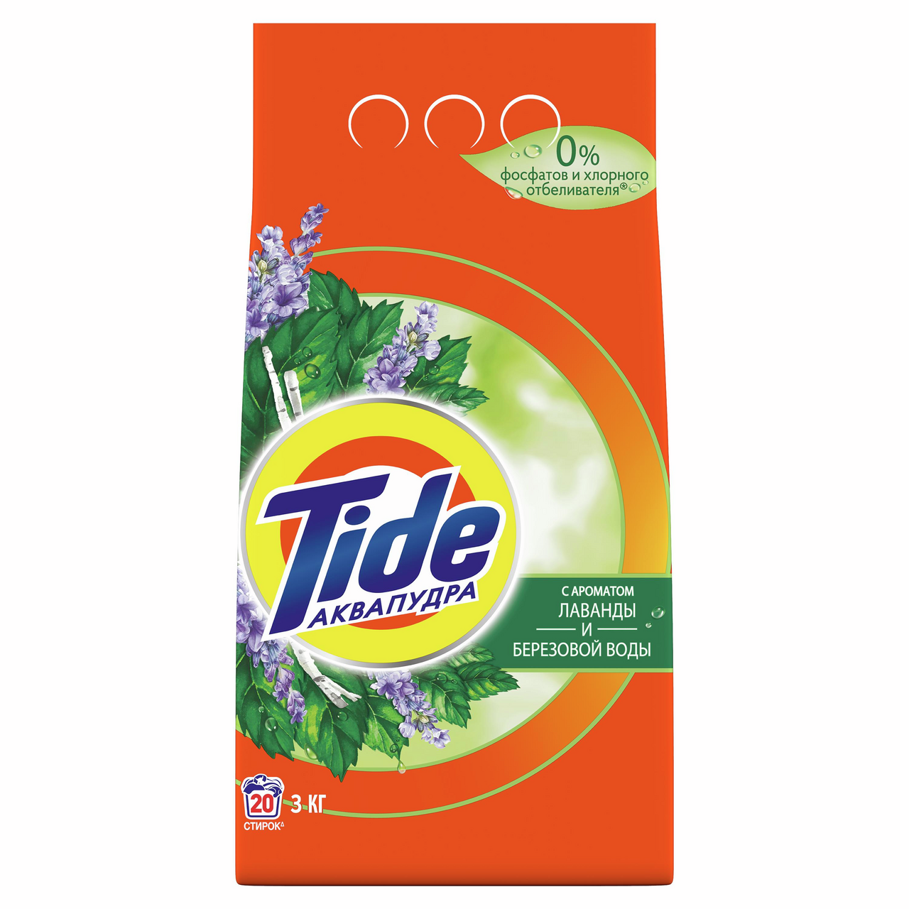 Стиральный Порошок Tide Лаванда И Березовая Вода сочетает в себе безупречное очищение от Tide с мягким ароматом, навеянным природой России. Tide тщательно подбирает ингредиенты для своих средств.Стиральный порошок для безупречного очищения от TideМягкий аромат, навеянный природой РоссииНе содержит фосфатов и хлорного отбеливателяСпециальная формула не оставляет разводов