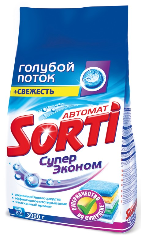 Стиральный порошок SORTI Супер эконом Голубой поток, 3кг