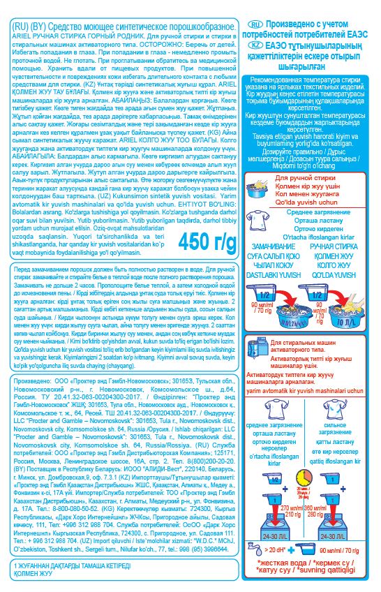 Стиральный порошок Ariel Горный родник, 450г