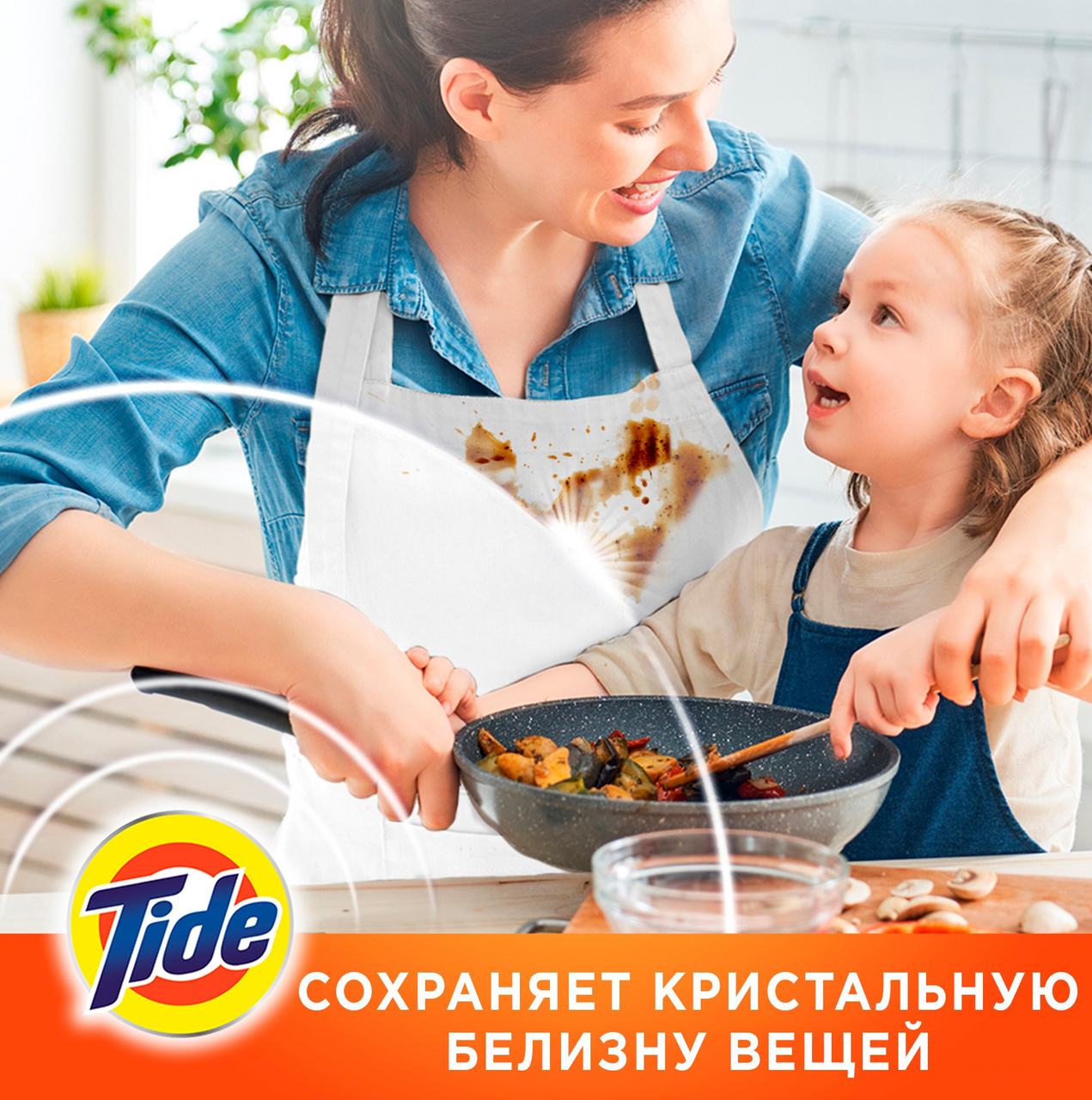 Стиральный порошок Tide Альпийская свежесть отлично отстирывает одежду всей семьи. Это не только высокоэффективное, но и экономически выгодное средство, ведь одна доза Tide позволяет добиться большей белизны, чем две дозы обычного средства для стирки. Доверьте Tide стирку одежды вашей семьи, и вы будете выглядеть превосходно. Не тратьте драгоценное время на стирку - Tide с легкостью сделает все за вас. Вдобавок Tide придаст вашей одежде легкий и приятный аромат. Преимущества: Одна доза Tide делает вещи более белоснежными, чем две дозы обычного средства для стирки. Делает одежду невероятно чистой. Приятный легкий аромат 100% белоснежности Tide 0% замачивания.