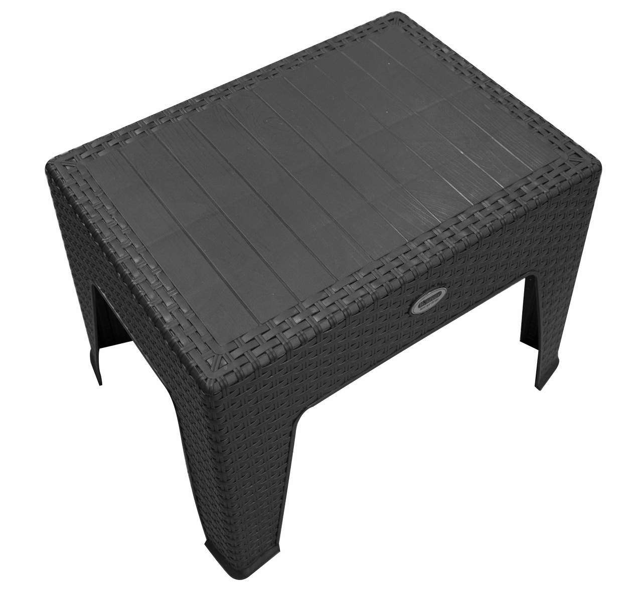 Столик выполнен из высокопрочного полипропилена. Маленький кофейный столик с гладкой столешницей и декоративным плетением ротанг. Цвет - антрацит. Размер столика: 43,5х40х55 см (длина*ширина*высота). Максимальная нагрузка 40 кг.