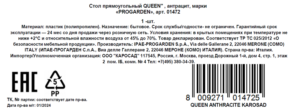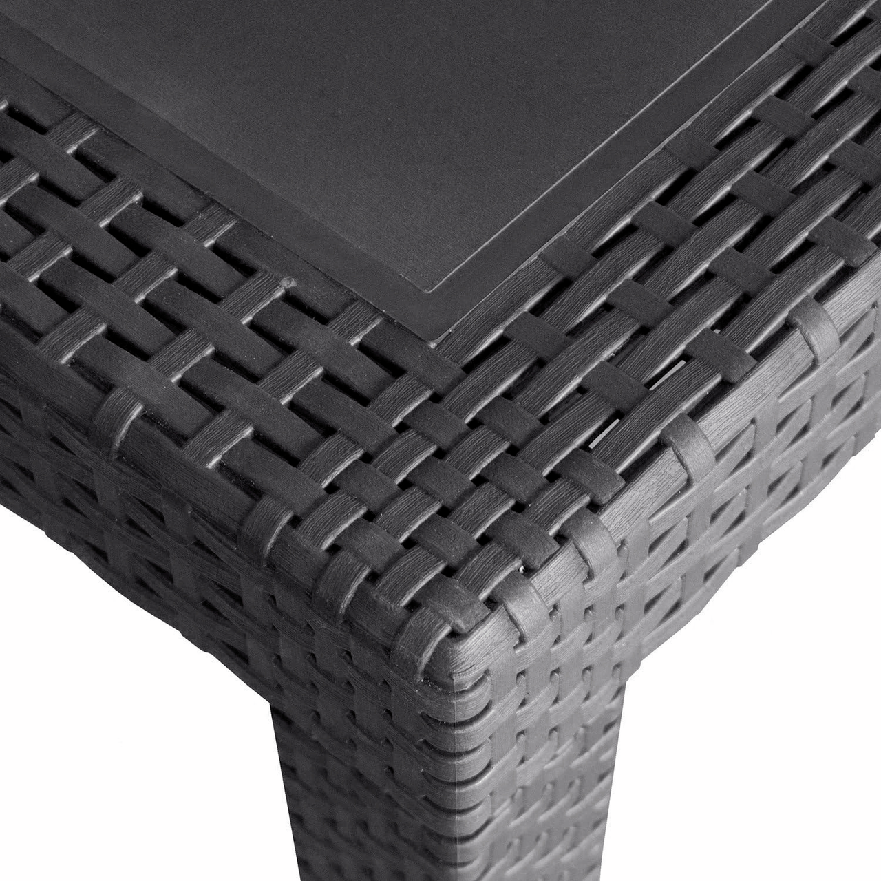 Прямоугольный стол Queen имеет размер 90x220x72 см. Выполнен из пластика с имитацией ротанга. Цвет стола - антрацит. Изготовлен из ударопрочного полипропилена, стойкого к воздействию окружающей среды. Края столешницы и ножки декорированы под ротанг. Стол разбирается, что очень удобно для хранения и транспортировки. Стол отлично подойдет для зоны отдыха как внутри, так и снаружи помещения. Материал: пластик. Максимальная нагрузка 65 кг. Упаковка - картонный короб.