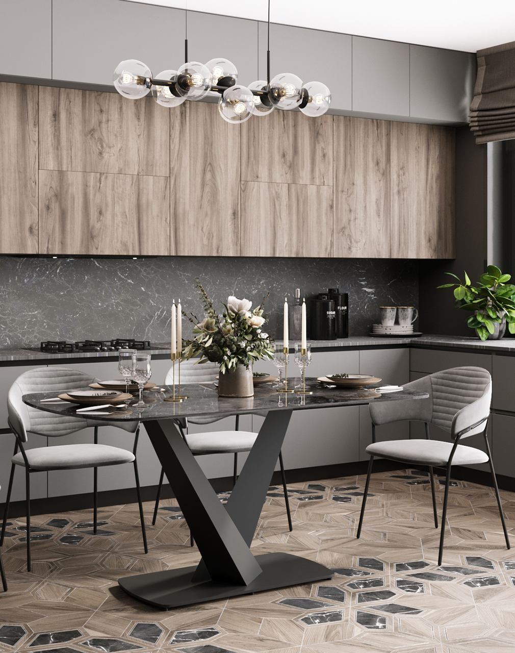 Стильный кухонный стул с оригинальной формой спинки, высокой поддержкой и подлокотниками. В качестве обивки используется мягкий велюр – приятный на ощупь износостойкий, гигроскопичный материал. Металлический каркас в черном цвете огибает спинку и выступает аккуратным акцентом модели. Широкое сиденье обеспечивает удобную посадку и уют.