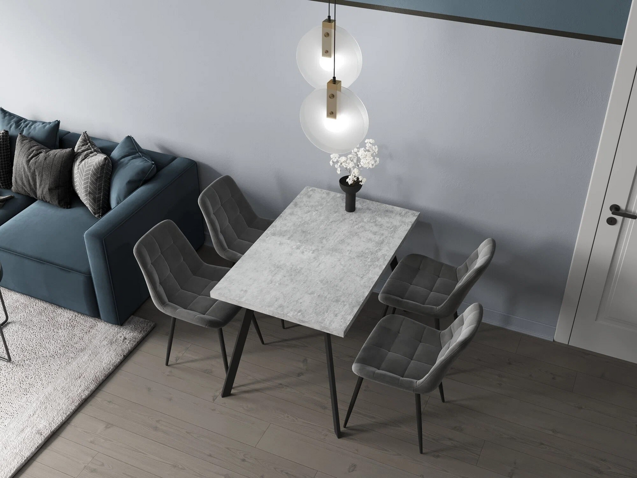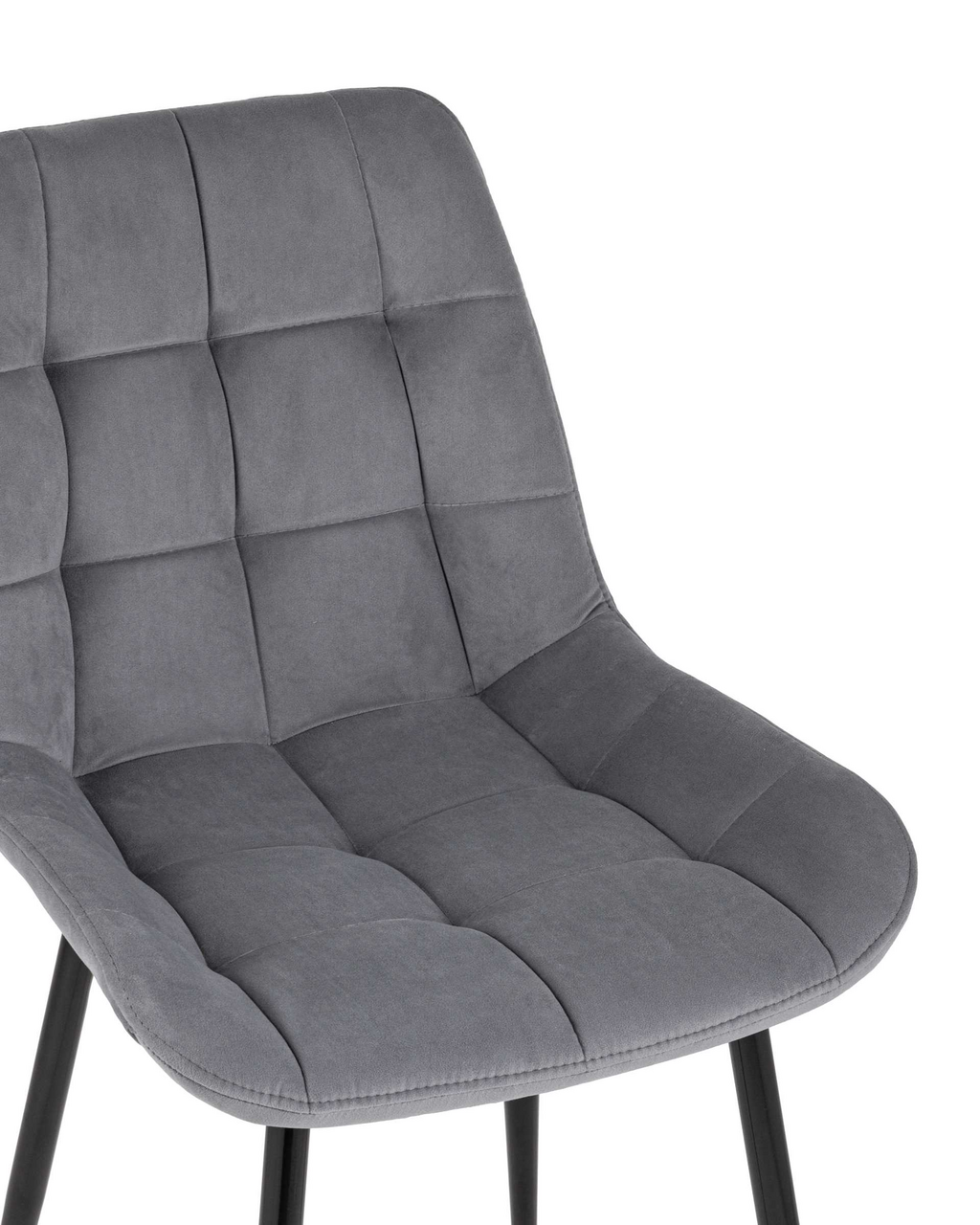 Обеденный стул в мягкой обивке из велюра без подлокотников. Ножки черные, изготовлены из металла. Удобная форма сиденья, поддерживающая спинка. Лаконичный дизайн стульев подойдет к обеденному столу любого дизайна.