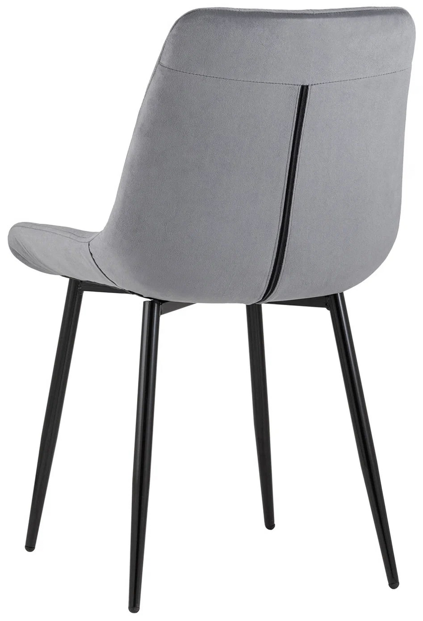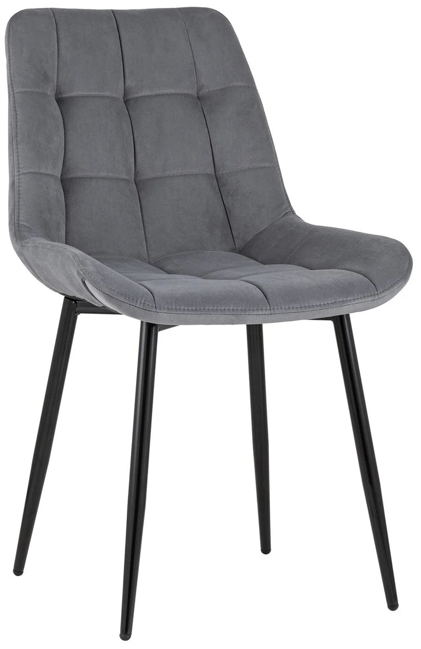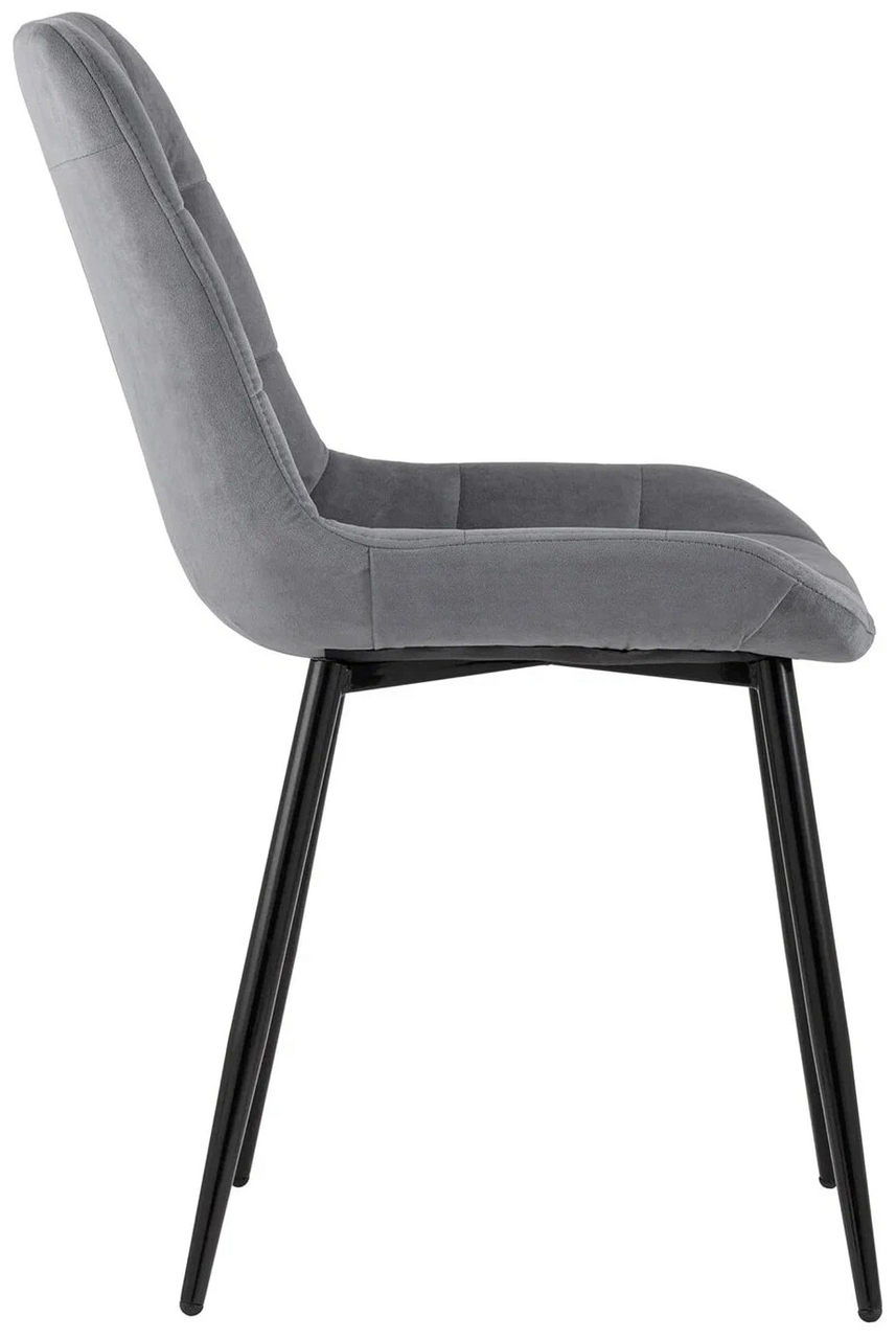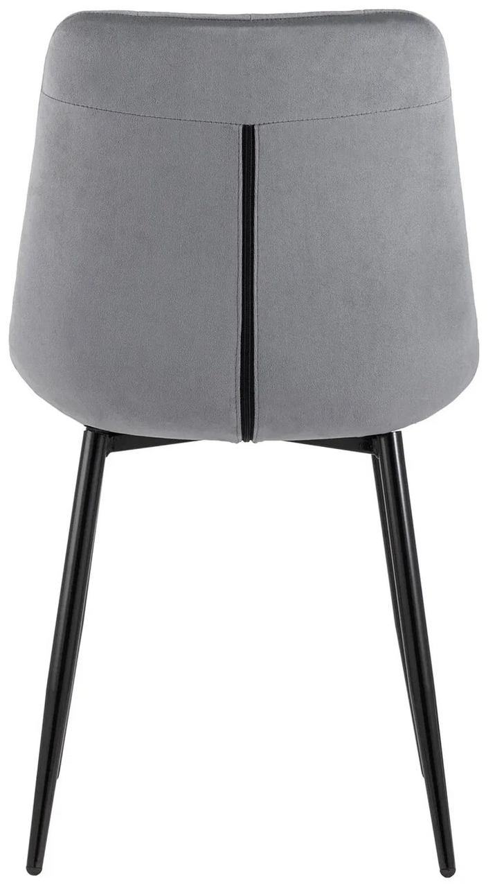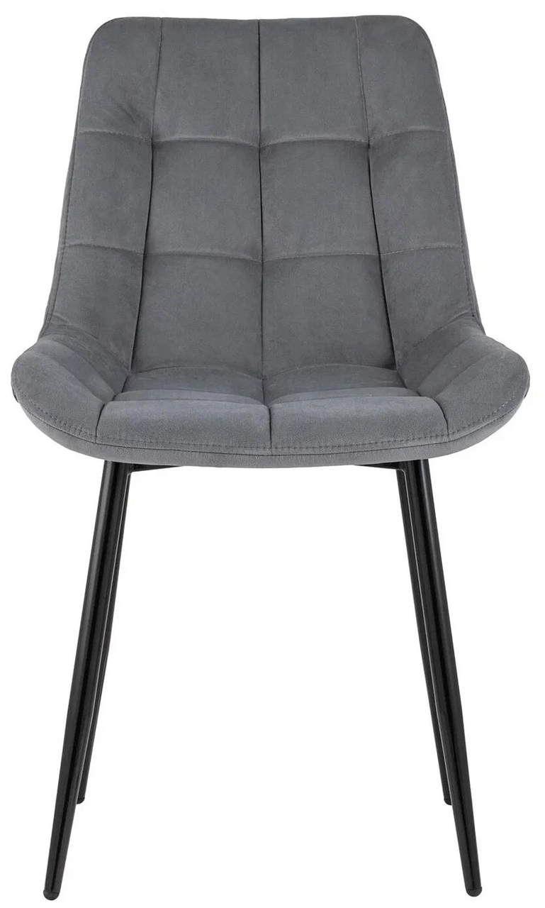 Стул Флекс (box) велюр серый, 1 x 4 шт — обеденный стул в мягкой обивке из велюра серого цвета без подлокотников. Черные ножки изготовлены из металла. Стул имеет удобную форму сиденья, комфортную поддерживающую спинку, а декоративная стяжка придает объём и защищает от образования вмятин. Лаконичный дизайн стульев подойдет к обеденному столу любого дизайна.