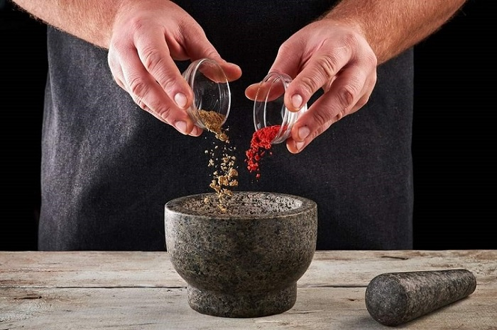 Ступка с пестиком Fackelmann гранит, 9 x 13 см, 0,3 л предназначена для приготовления свежих специй, приправ и соусов, измельчения пряностей, трав и зерен. Ступка и пестик выполнены из цельного куска натурального гранита, что обеспечивает долговечность использования. Благодаря шероховатой рабочей поверхности происходит эффективное измельчение. Объем чаши составляет 300 мл. Свежеприготовленные приправы обладают более богатым и насыщенным ароматом, делая ваши блюда еще привлекательнее. Тяжелую ступку из натурального гранита нельзя мыть в посудомоечной машине.