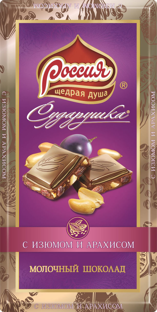 Шоколад СУДАРУШКА с арахисом и изюмом, 90г