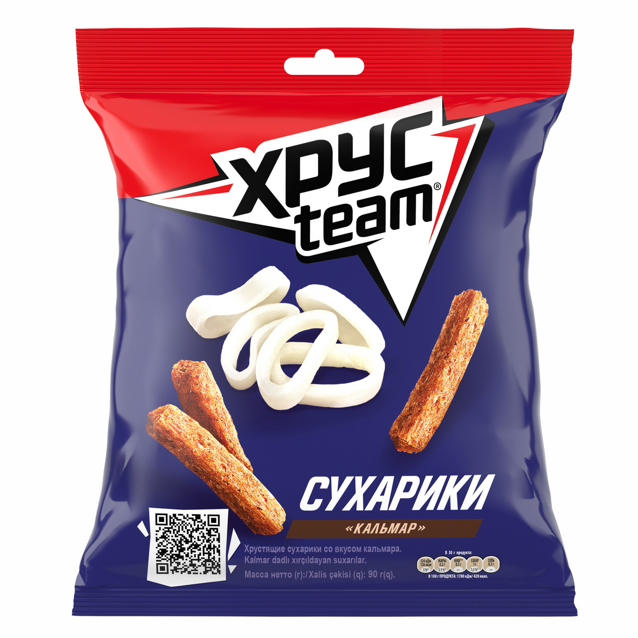 Сухарики Хрустим к пенному Кальмар – это отличное решение для шумной вечеринки. Хрустим с насыщенным вкусом кальмара будут подходящей закуской к пиву, чтобы поддержать вас во время просмотра матча любимой команды. К тому же вы можете приготовить сытный салат для праздничного стола. Сухарики Хрусteam придадут ему пикантные нотки. Фольгированная упаковка сохраняет вкусовые качества Хрусteam, чтобы вы получили настоящее удовольствие.