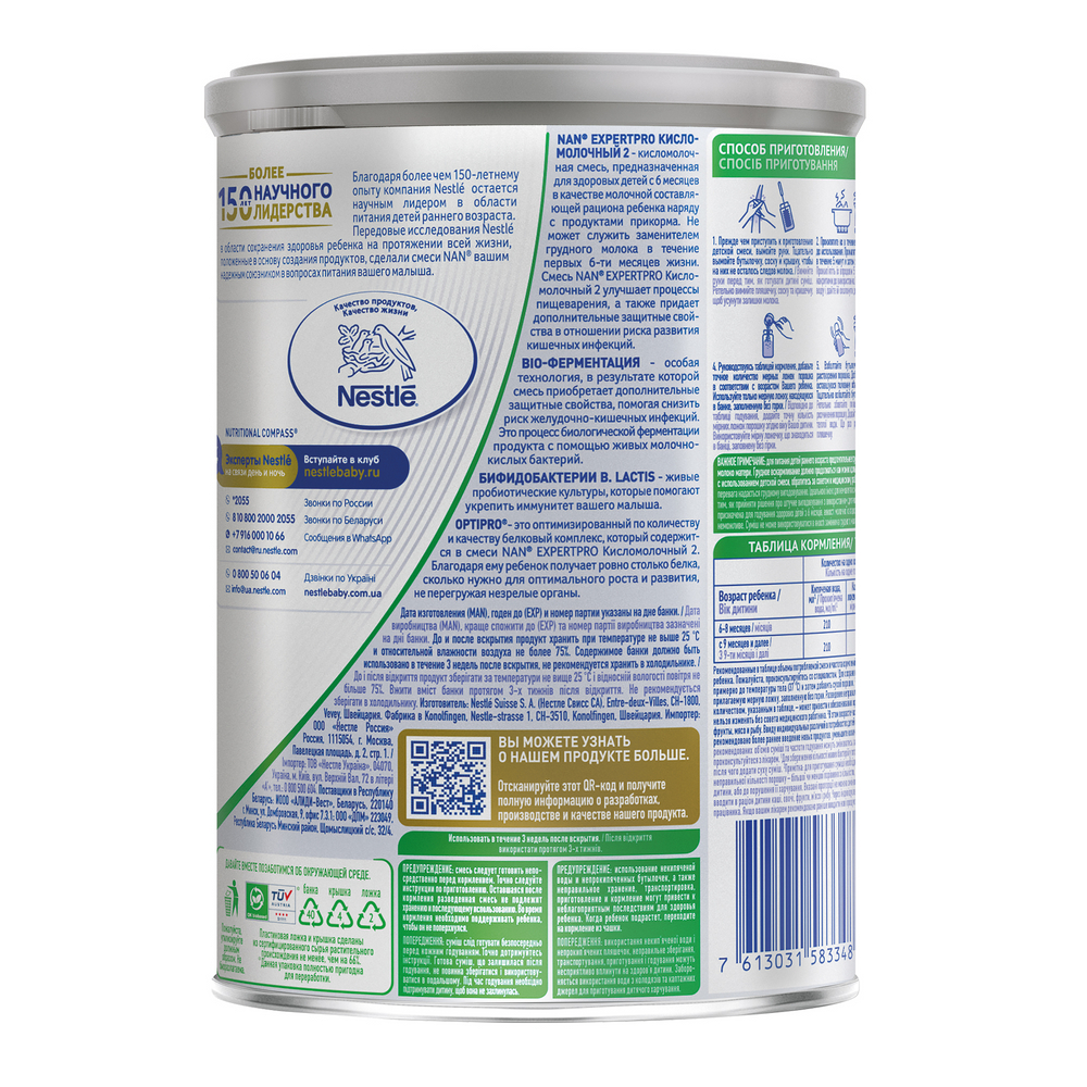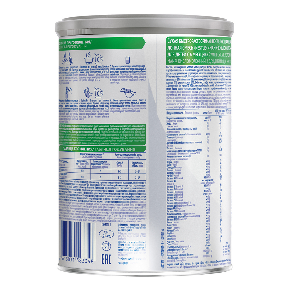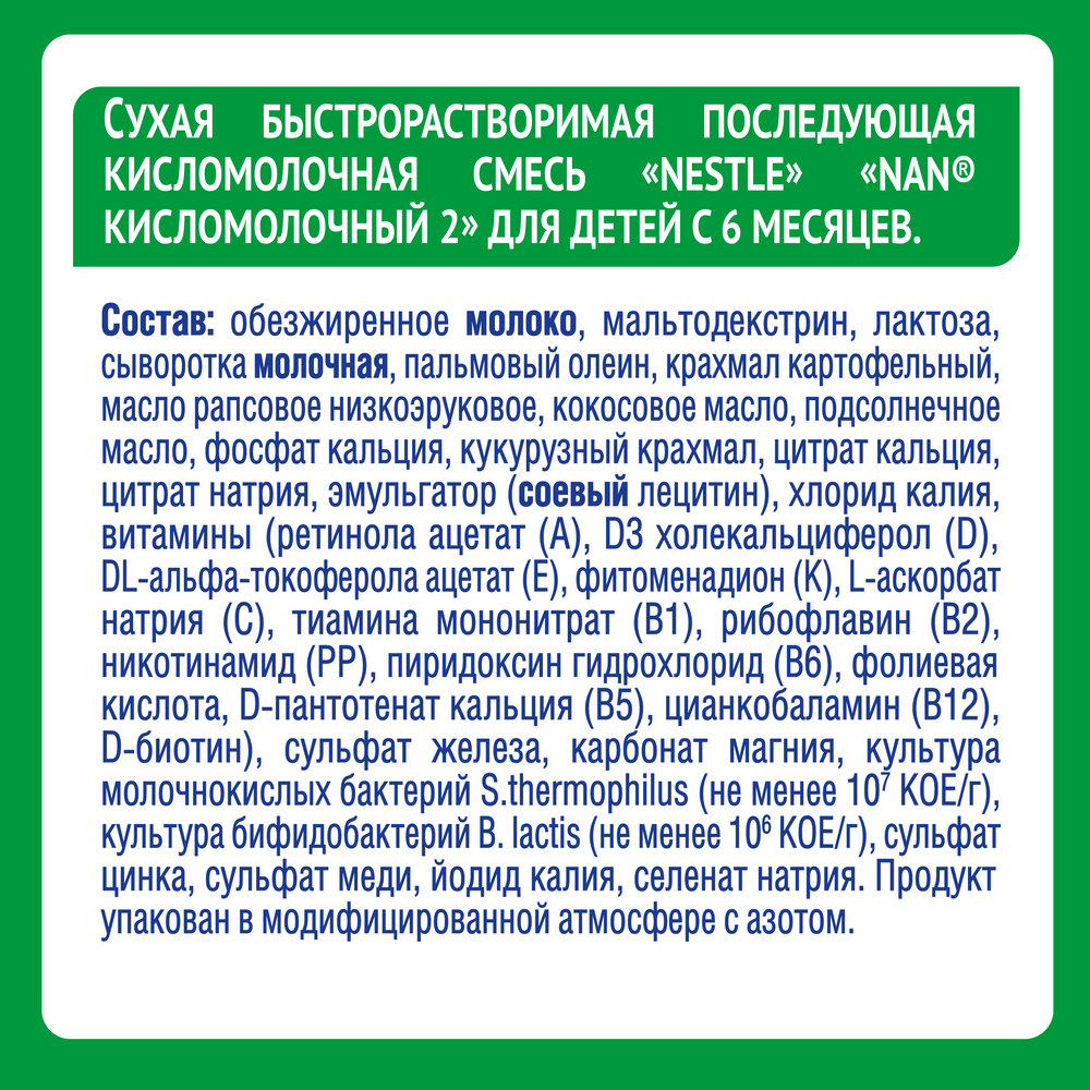 Смесь кисломолочная детская NAN 2 с 6 месяцев, 400 г