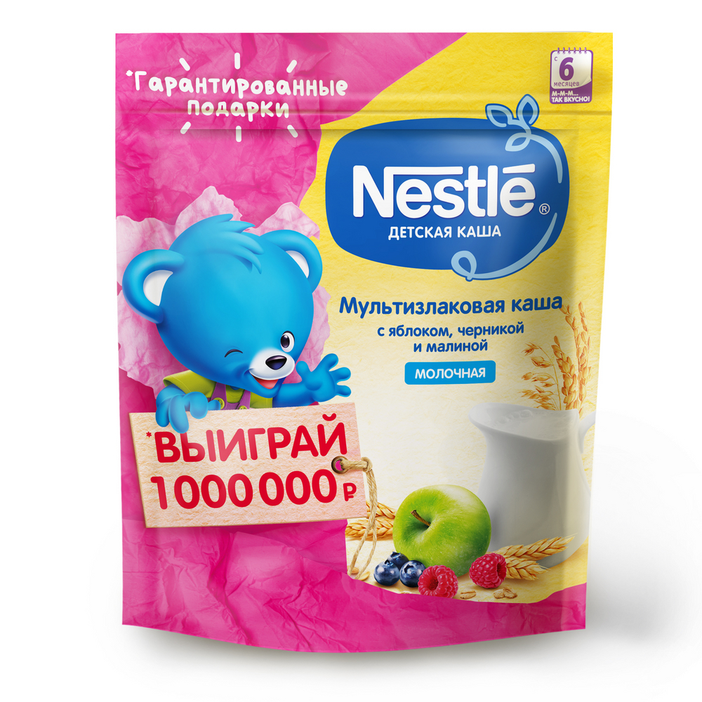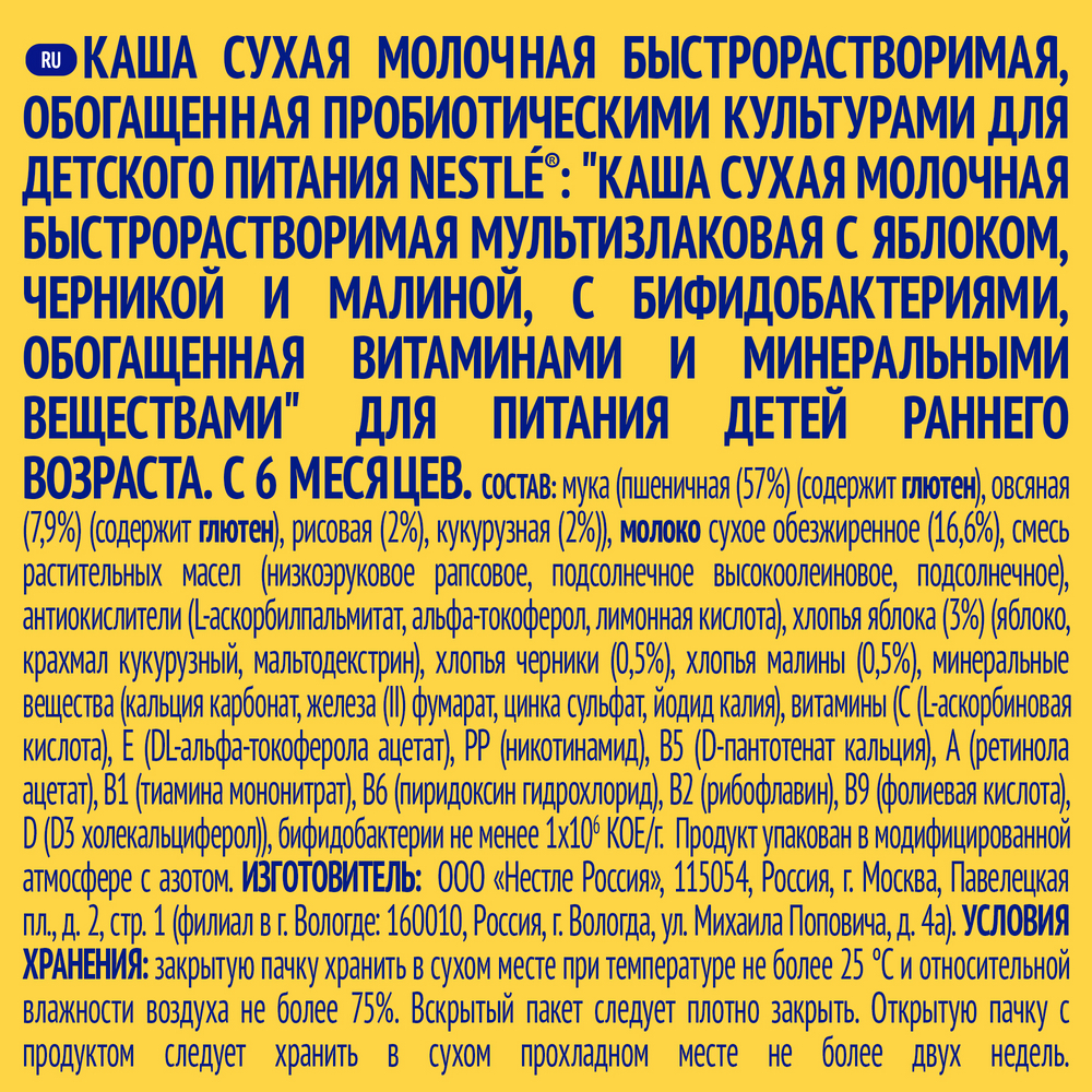 Каша Nestle молочная Мультизлаковая с яблоком, черникой и малиной, 220г