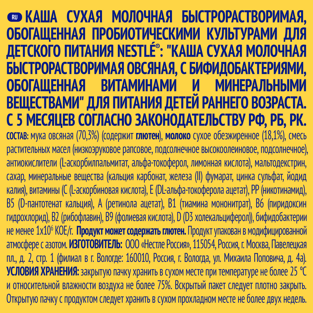 Каша Nestle овсяная молочная сухая с бифидобактериями, 220г