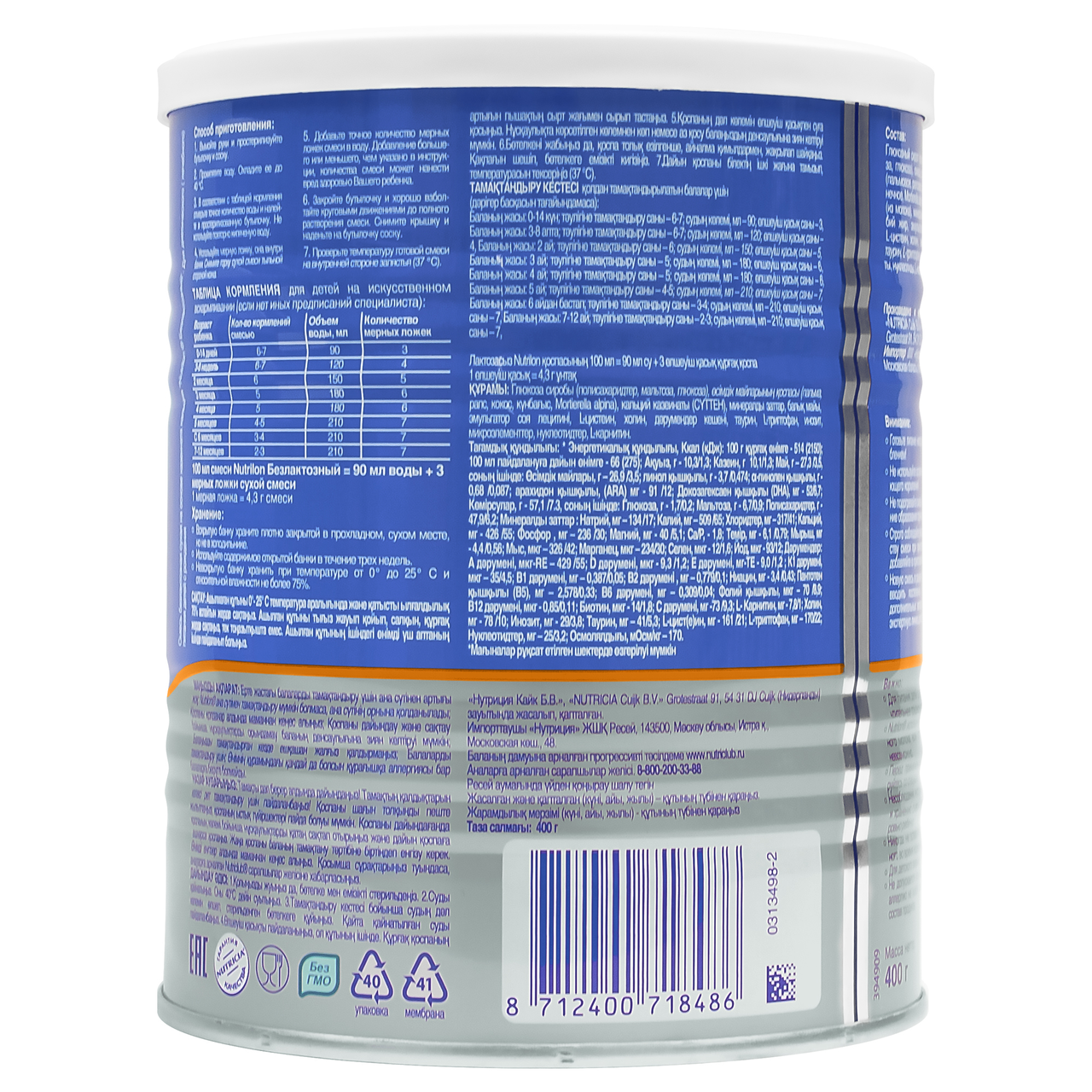 Сухая смесь Nutrilon Безлактозный, 400г